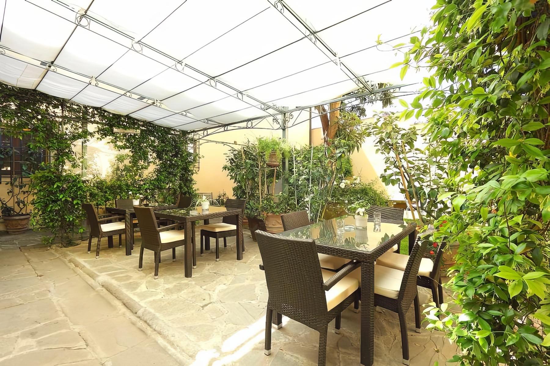 Every morning, you can start your day with a cozy and relaxing breakfast, thanks to the in-room coffee station and a basket filled with pastries, jams, and fresh fruit. You can enjoy this in complete peace either in your room or outdoors in the villa's courtyard.