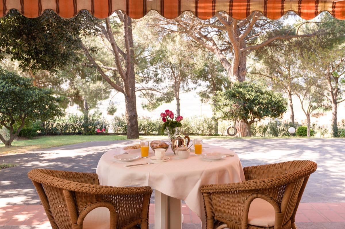 Every morning, a buffet breakfast is served on the ground floor of the B&B and you can choose whether to enjoy it indoors or under the porch overlooking the garden.