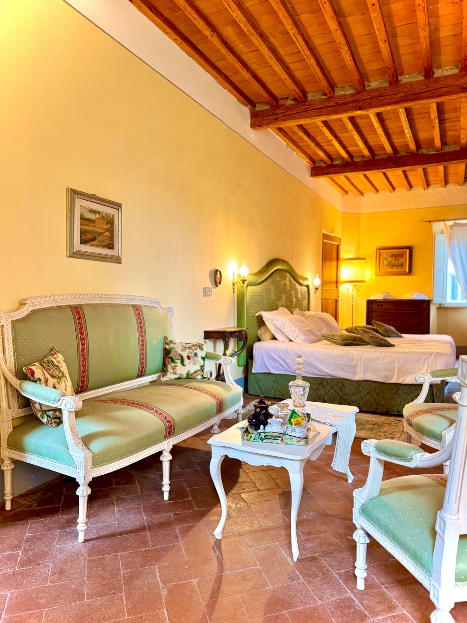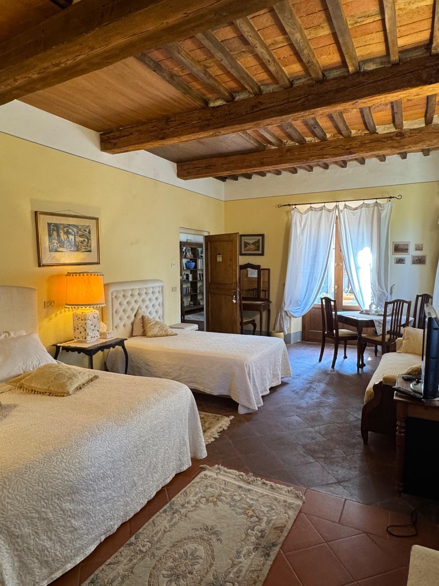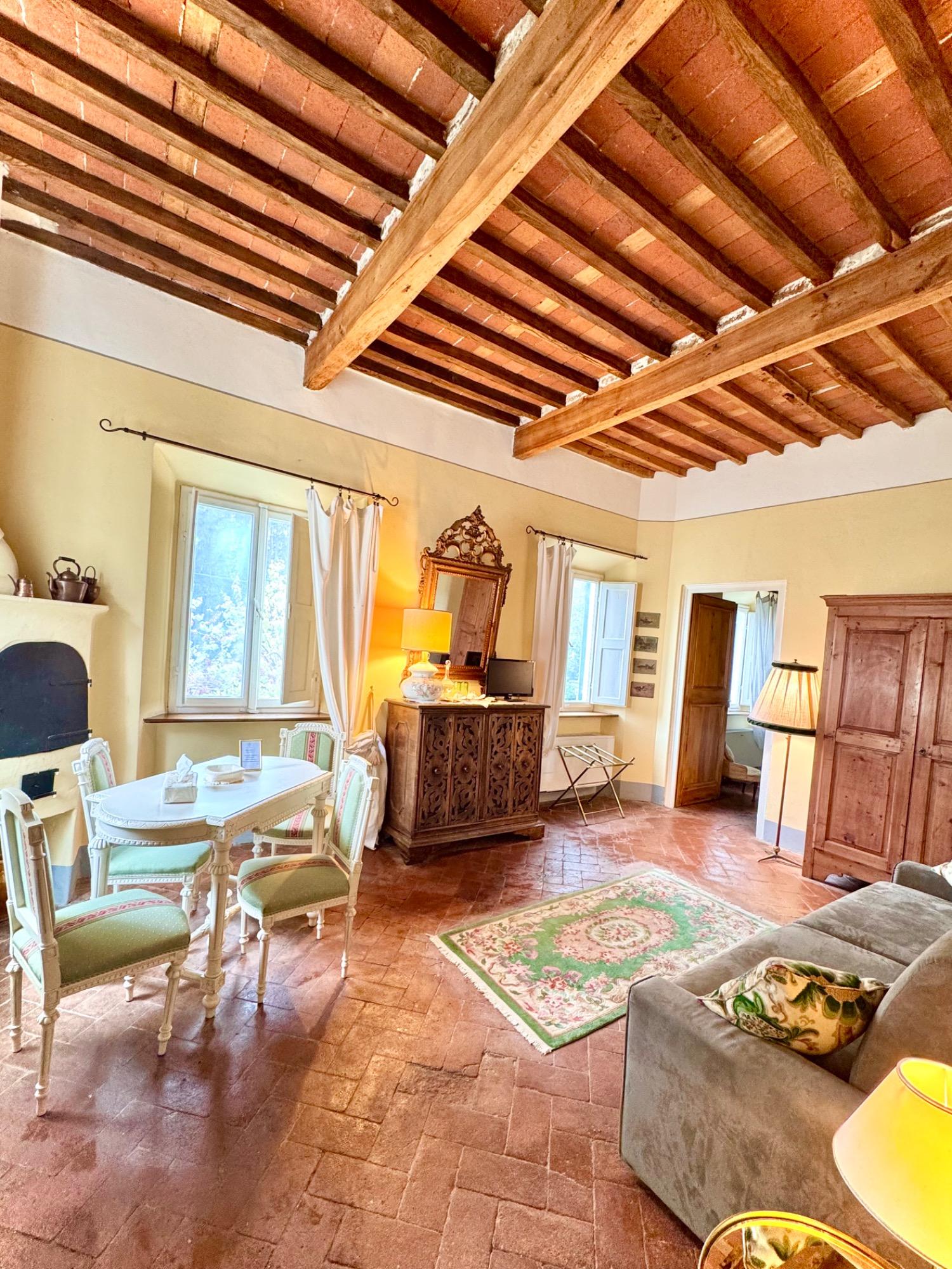 L'intérieur de la villa est caractérisé par une atmosphère calme et paisible, qui reflète la tradition toscane. Les sols en terre cuite ancienne, les plafonds avec poutres en bois et les meubles de famille restaurés créent une ambiance élégante et raffinée. Toutes les chambres sont équipées de chauffage indépendant, de lits doubles ou de lits à la française dans les suites.