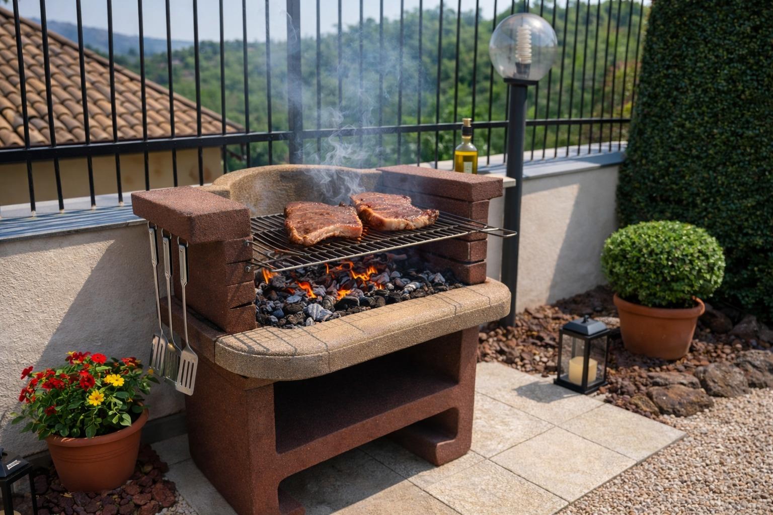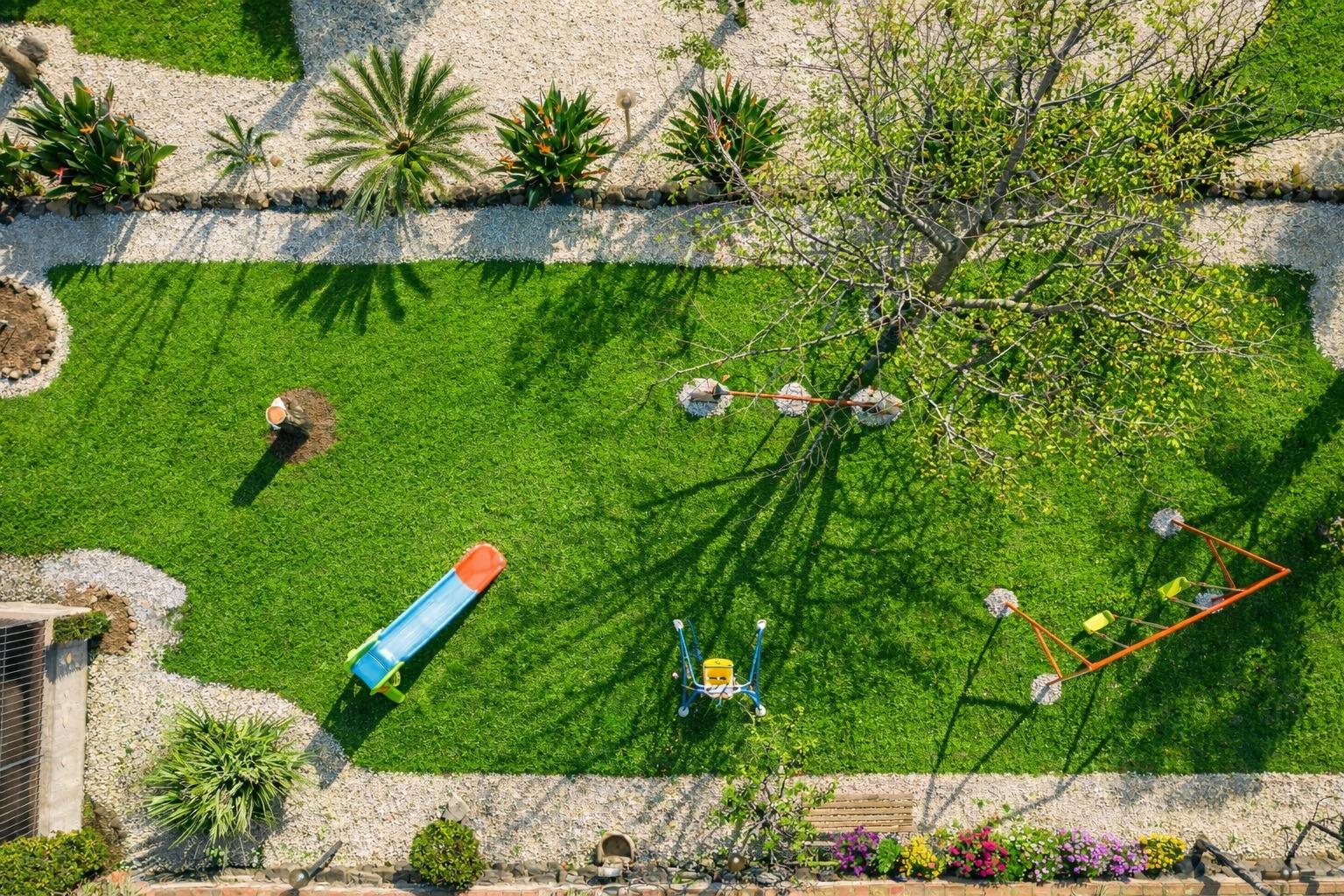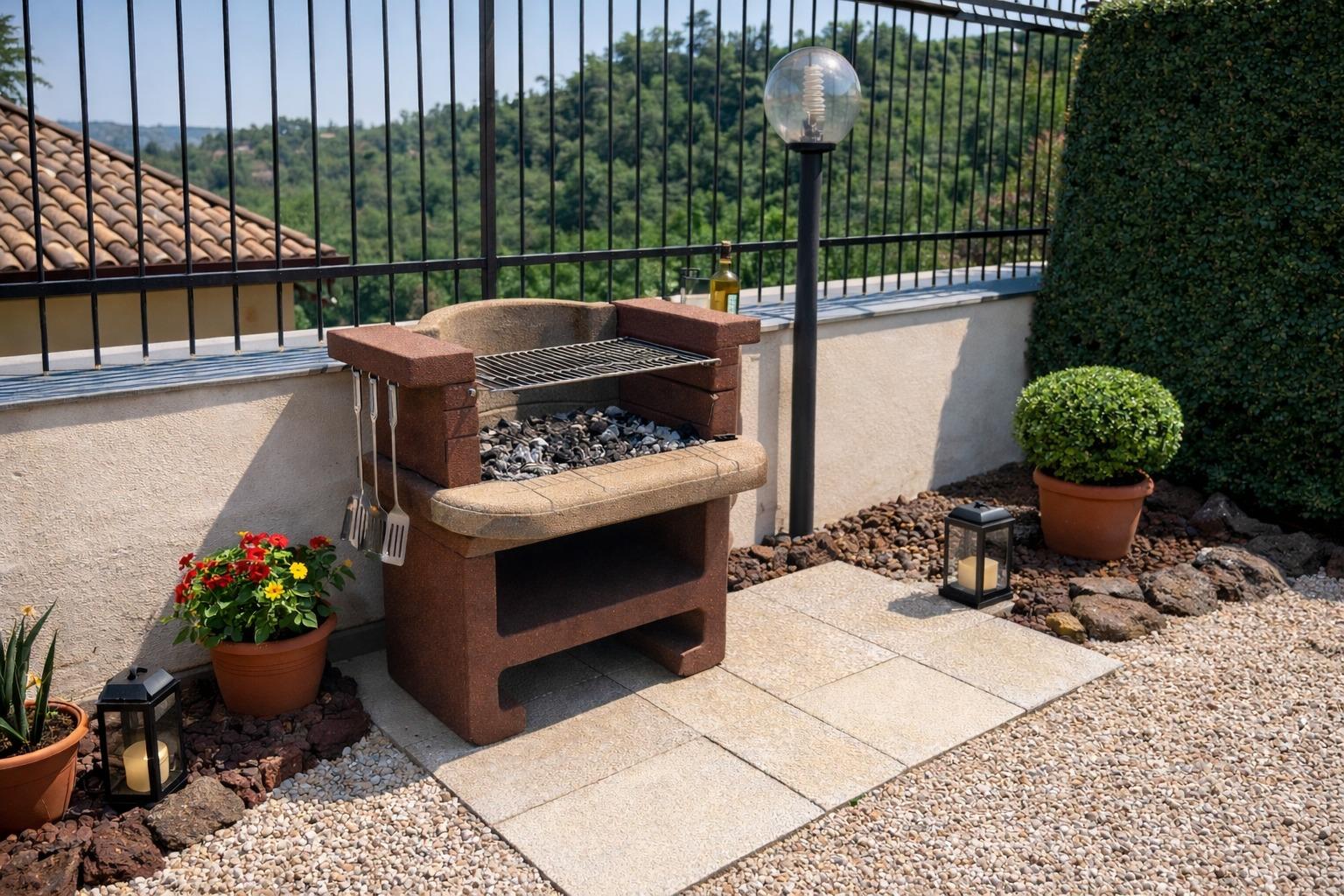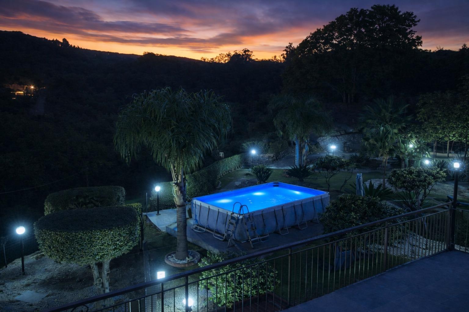 Außerhalb der Villa finden Sie eine Reihe von Annehmlichkeiten, die entwickelt wurden, um allen Ihren Bedürfnissen gerecht zu werden. Es gibt einen überdachten privaten Parkplatz, um die Sicherheit Ihrer Fahrzeuge zu gewährleisten. Für die jüngeren und junggebliebenen Gäste gibt es einen Spielbereich mit Schaukeln, einer Rutsche und sogar einer Hängematte für Momente des reinen Vergnügens. Grillliebhaber können einen dedizierten Bereich nutzen, um köstliche Grillgerichte im Freien zuzubereiten. Darüber hinaus gibt es einen oberirdischen Pool mit Sonnenschirmen, Liegestühlen und Tischen, um die Sonne und Entspannung zu genießen, ergänzt durch eine Außendusche, um sich an heißen Tagen abzukühlen.