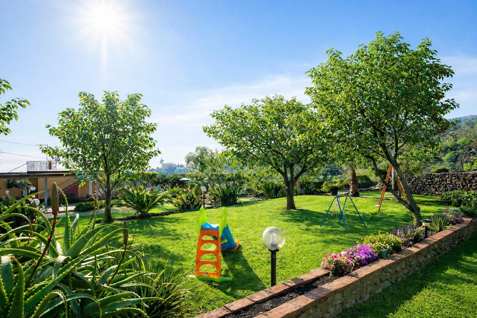Villa Laura ist weit mehr als nur eine einfache Unterkunft; es ist ein perfekter Rückzugsort für diejenigen, die Frieden und Ruhe in einer einzigartigen Umgebung suchen. Das markante Merkmal dieser Villa ist ihr bezaubernder privater Garten, der mit großer Sorgfalt gepflegt wurde und eine Vielzahl von Zier- und Obstbäumen beherbergt. Dieser Raum bietet ein exklusives Erlebnis, in dem die Gäste sich entspannen und mit der Natur in Verbindung treten können.