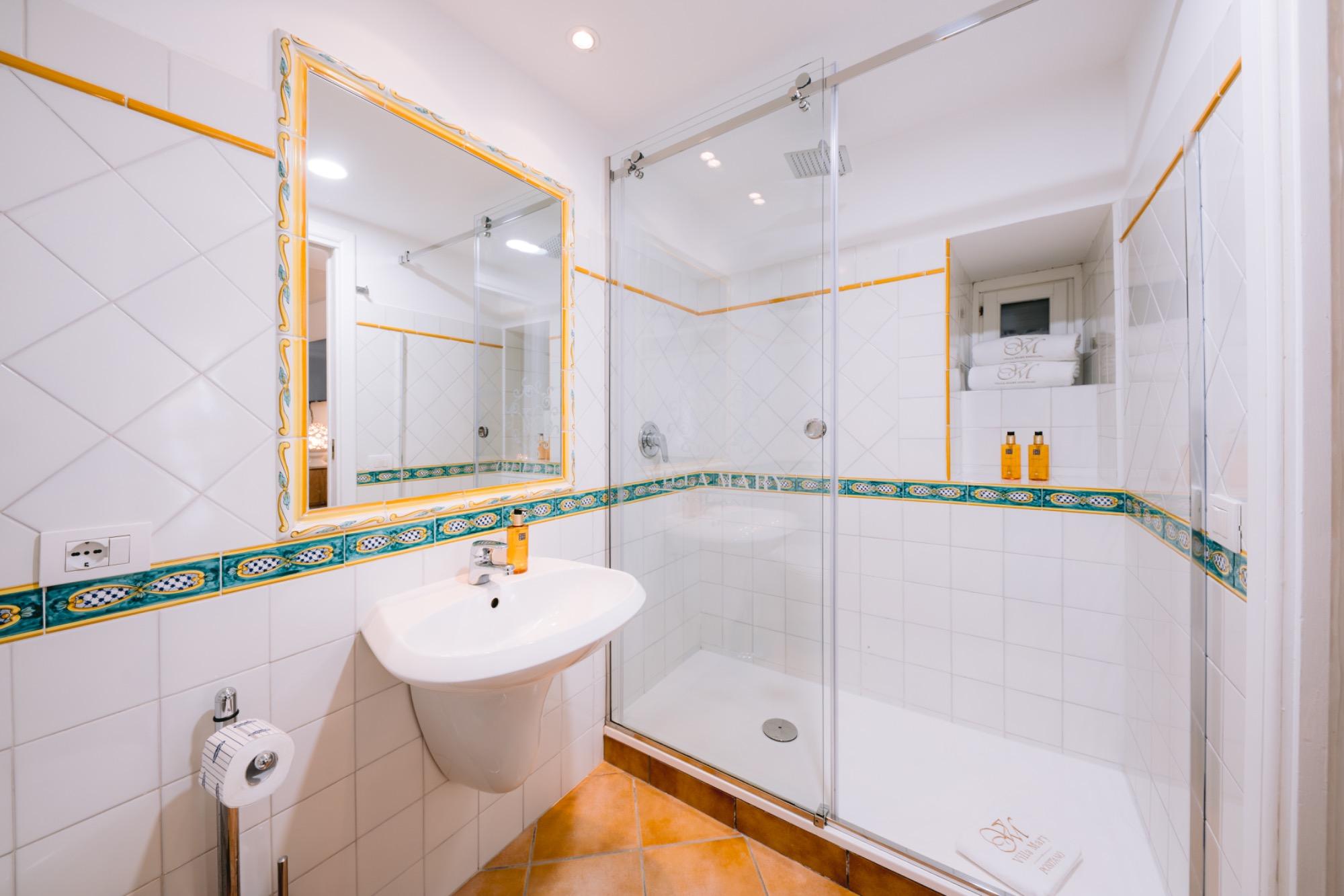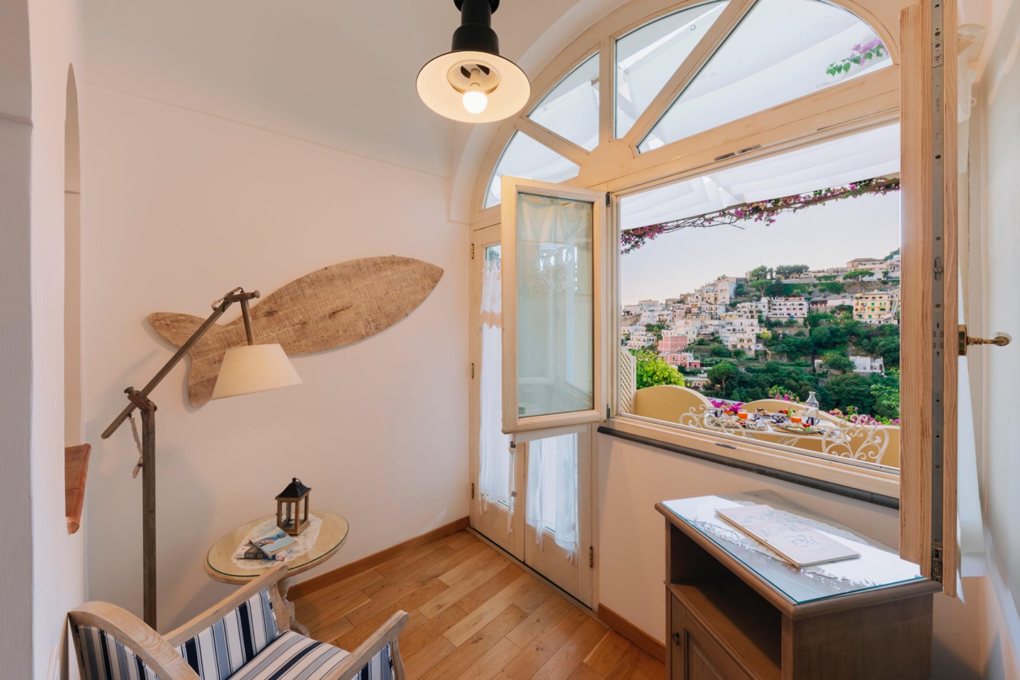 Recently renovated, the camera combines a classic high-quality floor with the bright colors of local ceramics. The large vault makes it bright and airy, keeping the air fresh even in summer. From this room you can see the city of Positano and its sea, enjoying our delicious breakfast on the room's private terrace.