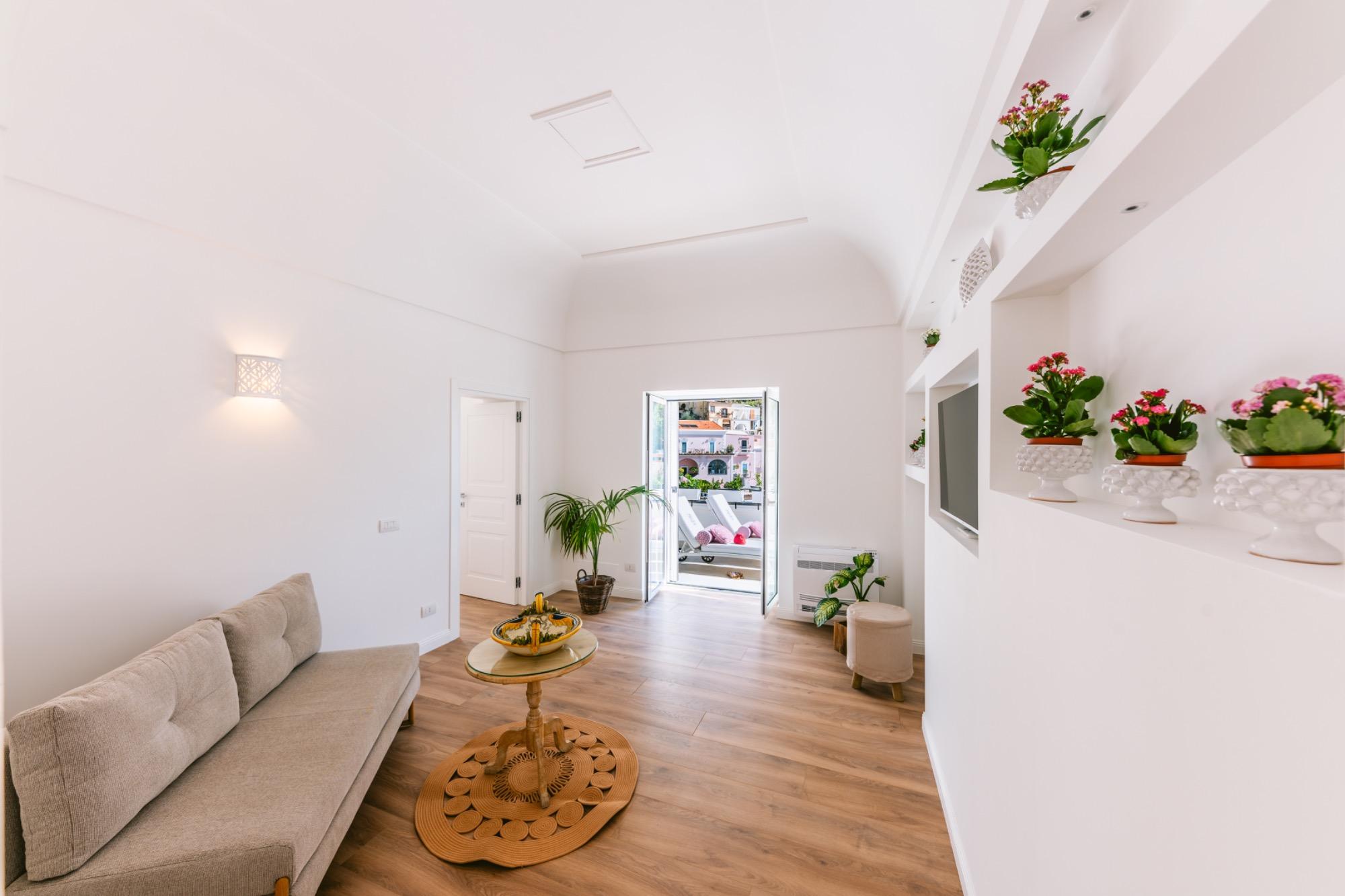 Completely renovated with new precious wooden flooring, a king-size bed and direct access to the pool overlooking the sea and the charming town of Positano, will offer you an unmissable opportunity to experience a dream in Positano."
