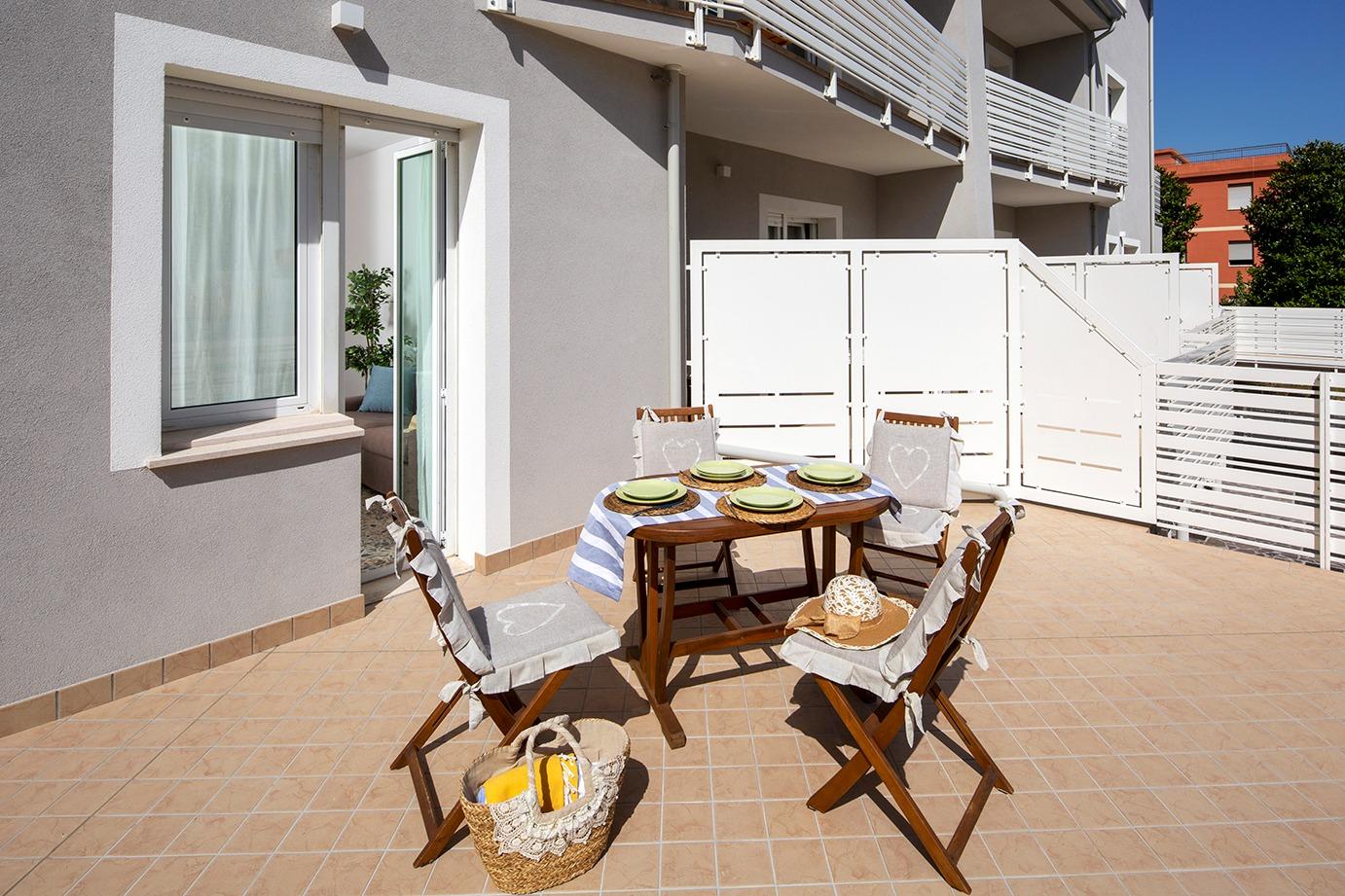 À quelques pas du front de mer et à environ 150 mètres de la plage, accessible facilement par un chemin piéton, les appartements permettent de profiter pleinement des vacances sans avoir besoin d'utiliser la voiture. Dans les environs immédiats, vous trouverez des plages, des restaurants, des supermarchés, des boutiques, des services utiles, et des connexions avec les transports en commun, rendant chaque déplacement simple et pratique.