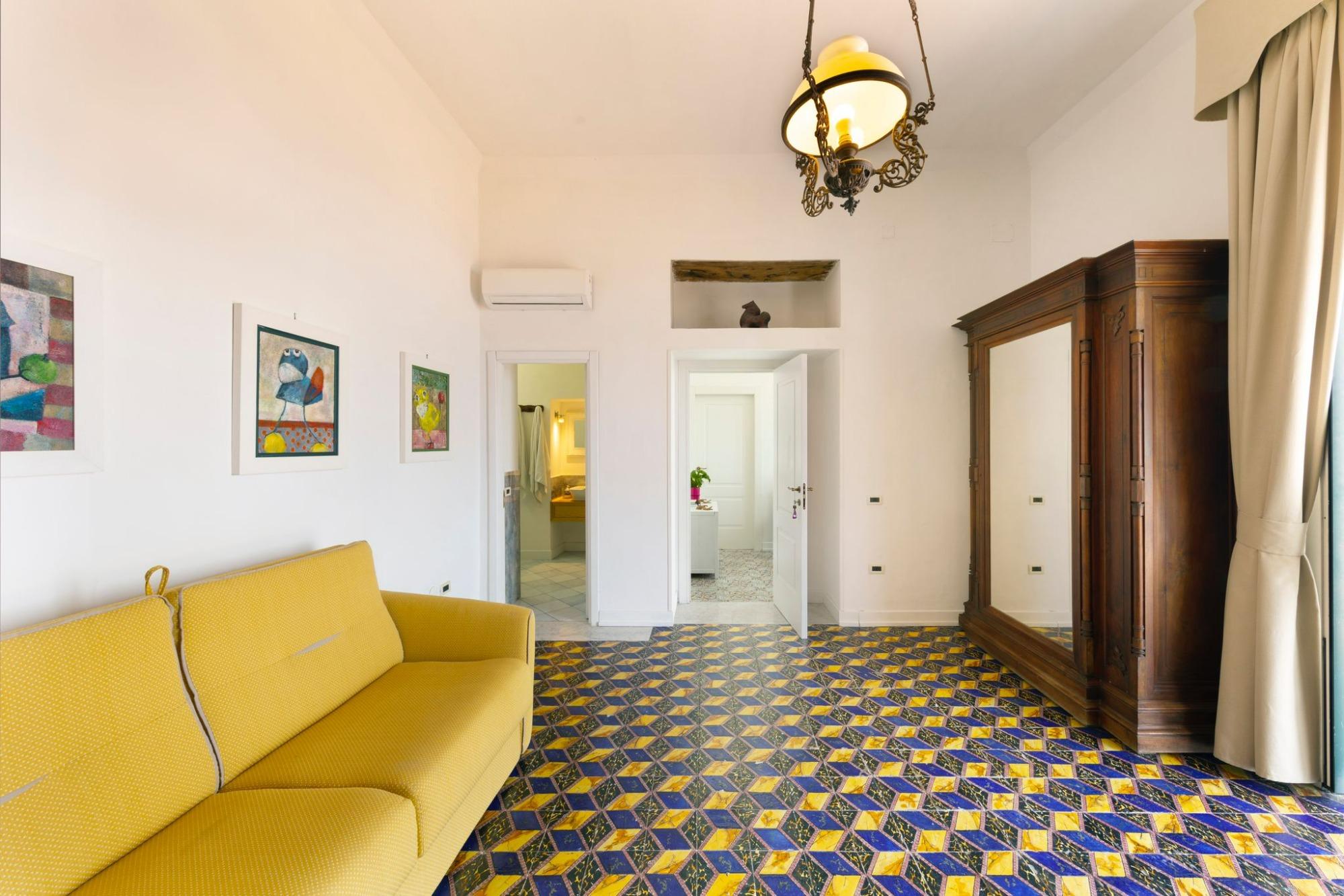 Nestled among the lush hills of the Sorrento Peninsula, Villa Mundis Relais offers a stunning view of the Gulf of Naples, where every sunset becomes a moment of pure enchantment. The property occupies a renovated section of a historic villa from the last century, where the charm of traditional architecture meets modern comforts: air conditioning, heating, Wi-Fi, and TV are available in all rooms.
