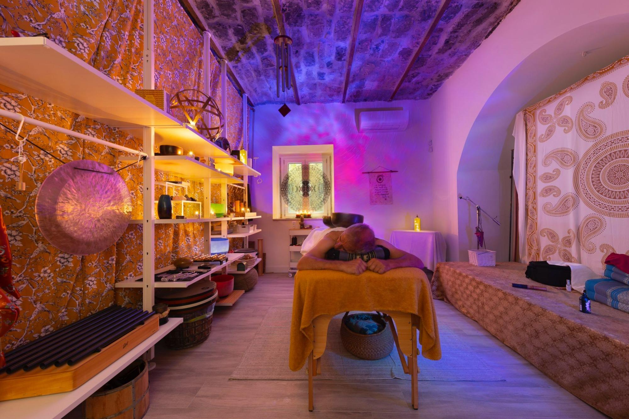 Villa Mundis Relais also includes a wellness room designed for meditation and bioenergetic treatments. Isabelle, co-owner of the establishment alongside Dario, is a professional holistic massage therapist and artist with over ten years of experience and certified training in various massage and healing techniques. During your stay, she offers personalized programs to rejuvenate both body and mind, reservable directly on-site.