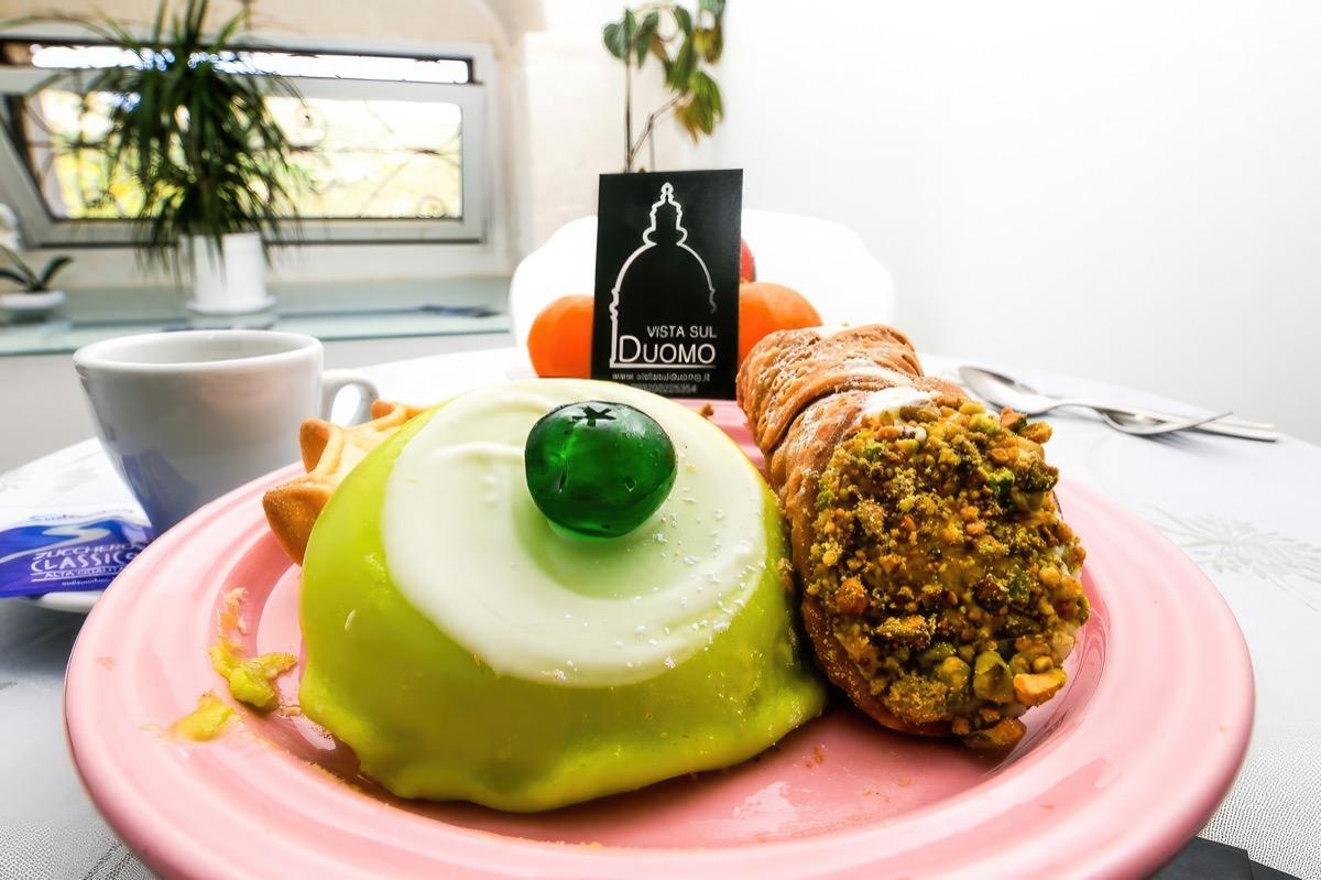 Il B&B Vista sul Duomo sorge al primo piano di un antico palazzetto degli anni ’30, completamente ristrutturato. All’interno della struttura si fondono il nero dell’antica pietra pece nei pavimenti e il bianco delle pareti, il gusto dell’antico all’ingresso e nelle scale e il design moderno ed accogliente delle camere e della sala colazione.