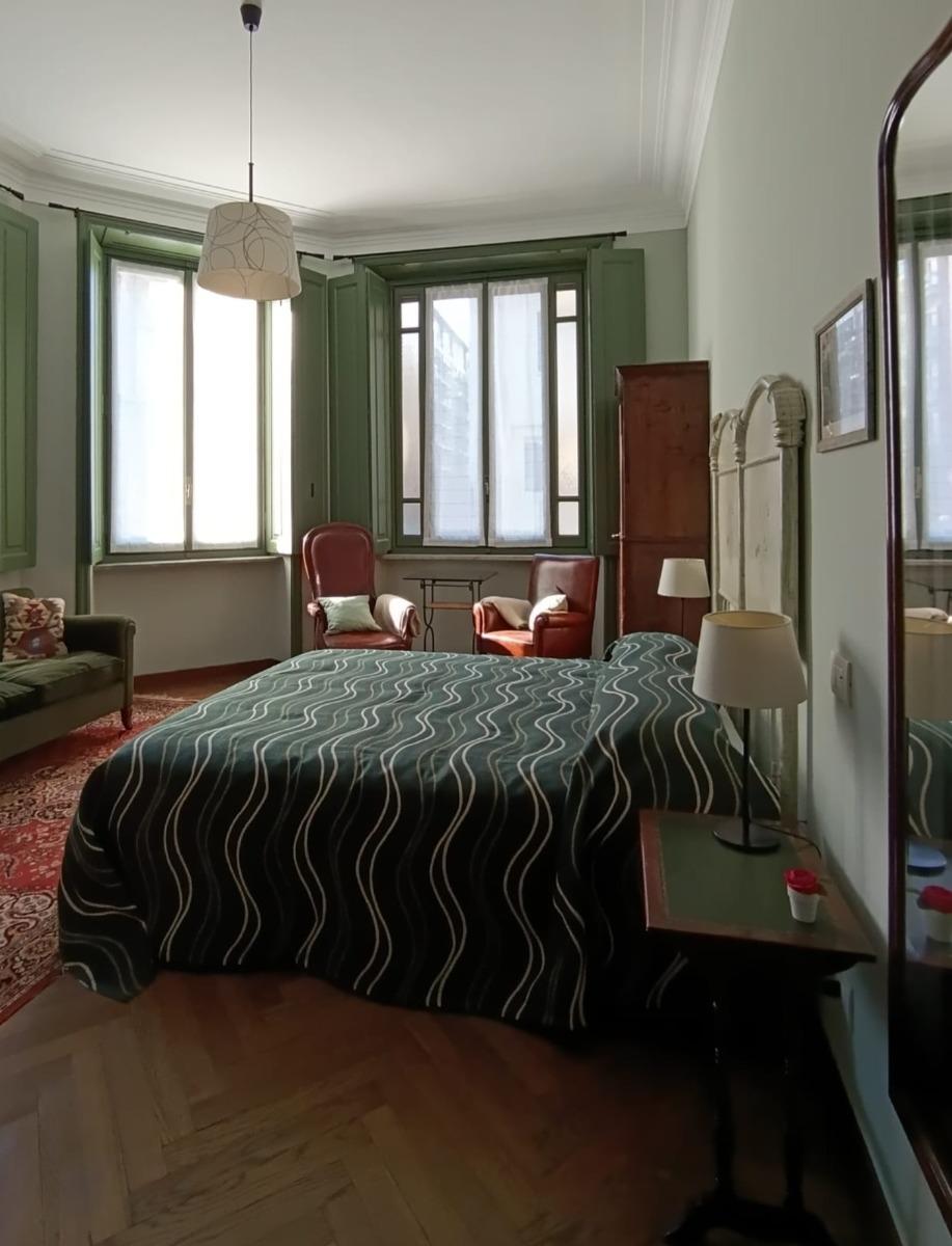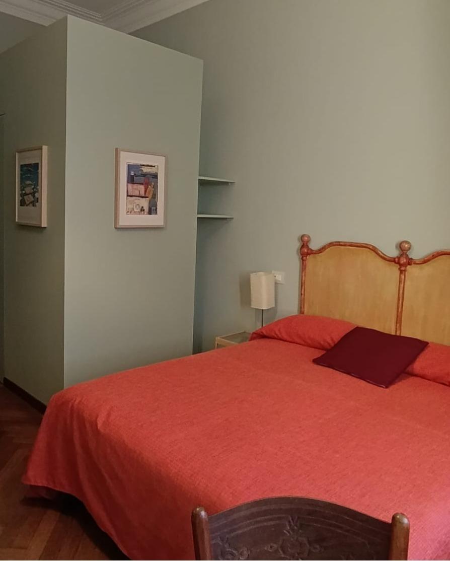 Amplio dormitorio doble de 18 m2. Con baño interno. Se caracteriza por su posición en esquina con tres ventanas luminosas. Es posible añadir una tercera cama. Completo con armario empotrado, espejo de pared, soporte para maletas, dos sillones, escritorio con silla y cómoda pequeña. Área de desayuno. WiFi conectado (gratis). . Plaza de aparcamiento de pago en el patio de la casa previa reserva (sujeto a disponibilidad)