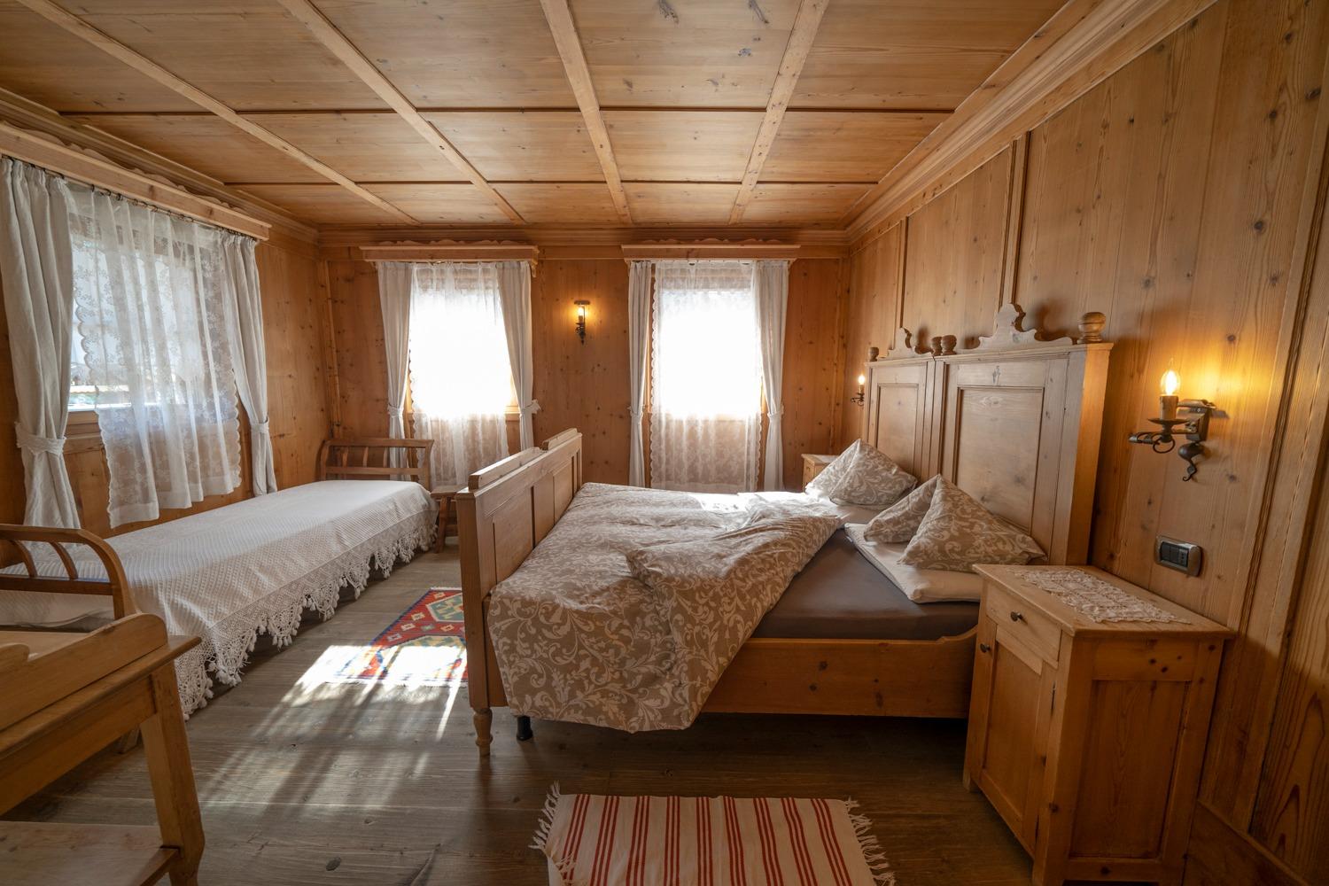 - La Camera Antica, con pareti rivestite in legno e lenzuola di lino tessute in casa, un ambiente che trasporta nel passato.