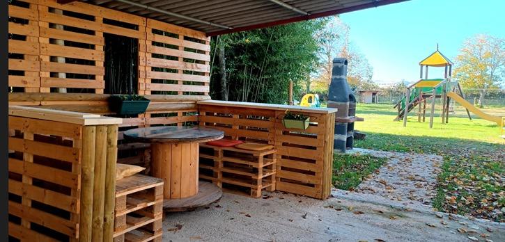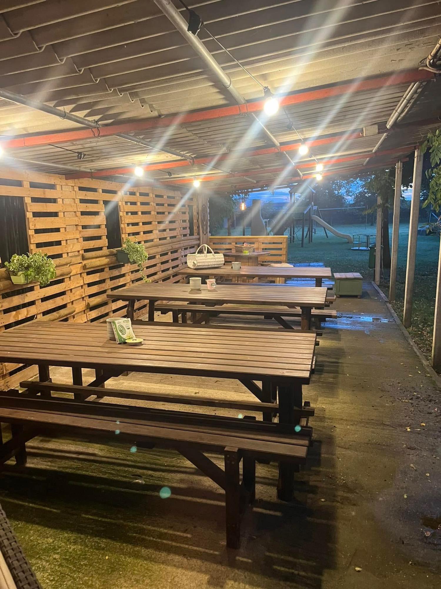 Outdoors, a spacious green park welcomes guests with picnic and barbecue areas, a shaded gazebo, and recreational spaces including a soccer field, a volleyball court, a children's playground, and the presence of animals like goats and birds. Bicycles are also available for free to explore the surrounding area. The property offers free parking and provides amenities suitable for families with young children, such as cribs upon request.