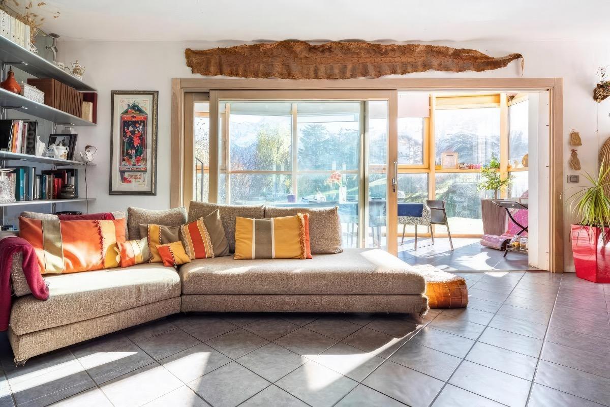 A splendid residence that overlooks the picturesque city of Aosta, with a wonderful winter garden. A family in search of an authentic connection with nature and extra space, in love with this secluded garden full of tropical plants, hidden from prying eyes but offering breathtaking views of the surrounding mountains.