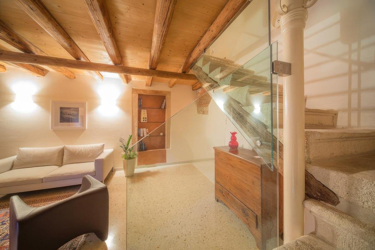 The living room is the beating heart of this house, a cozy place where you can gather and relax while sipping a cup of tea or enjoying a delicious glass of wine, nestled next to the warmth of the large wood-burning fireplace.