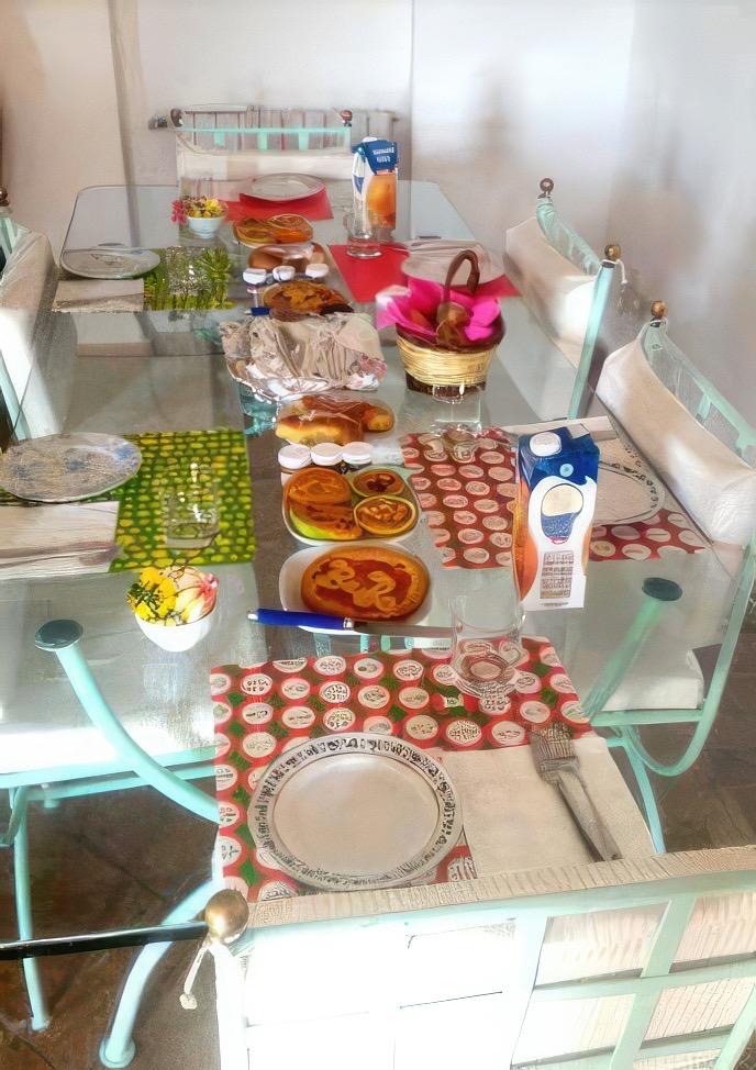 The morning starts with a delightful breakfast, lovingly prepared and varied every day. You can enjoy a selection of pastries, croissants, and cookies, or opt for a savory pizza if you prefer something more flavorful. The manager will personally take care of preparing your cappuccino or freshly brewed coffee. Additionally, you will also find a choice of teas, milk, and fruit juice to satisfy every preference.