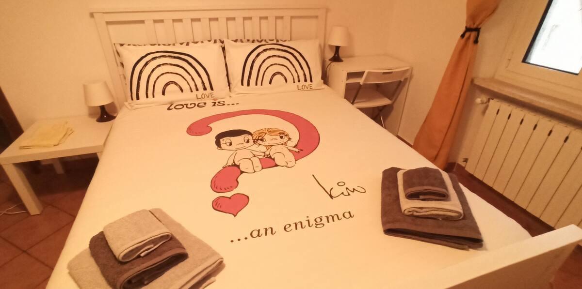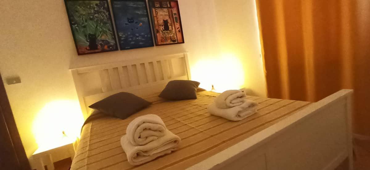 L’alloggio si trova al secondo piano ed è perfetto per coppie, famiglie o piccoli gruppi fino a quattro persone. Dispone di una camera matrimoniale, un soggiorno con divano letto, cucina accessoriata con forno elettrico, bollitore e tostapane, bagno con doccia e lavatrice. L’ambiente è climatizzato e dotato di Wi-Fi, seggiolone per bambini, ciotole e cuccia per animali, oltre alla biancheria e a tutto il necessario per cucinare.