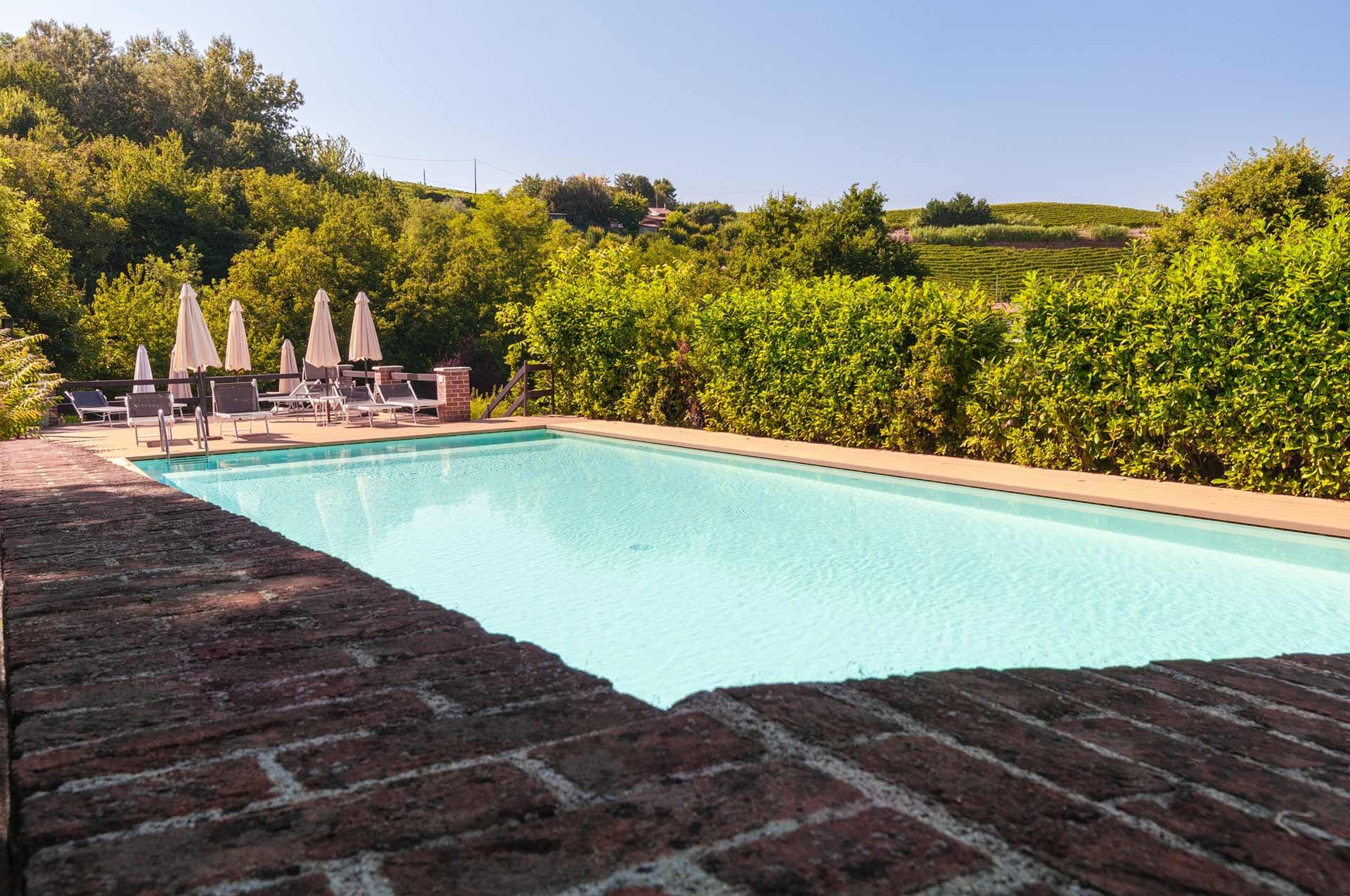 Casa Silvana country house is located in Alba, the capital of the Langhe region. Less than 2 km from the historic center, you will find yourself in an authentic country farmhouse, finely restored in every detail, surrounded by woods and vineyards. All accommodation options are carefully designed, equipped with modern comforts, without compromising the original style of the house. The 100 sqm infinity pool and the two sun terraces with loungers and umbrellas, the 1000 sqm lawn with fruit trees, rose gardens and laurel hedges, and the garden overlooking all the rooms, guarantee maximum tranquility and the opportunity to fully enjoy the colors of the sky and the surrounding hills, in every season.