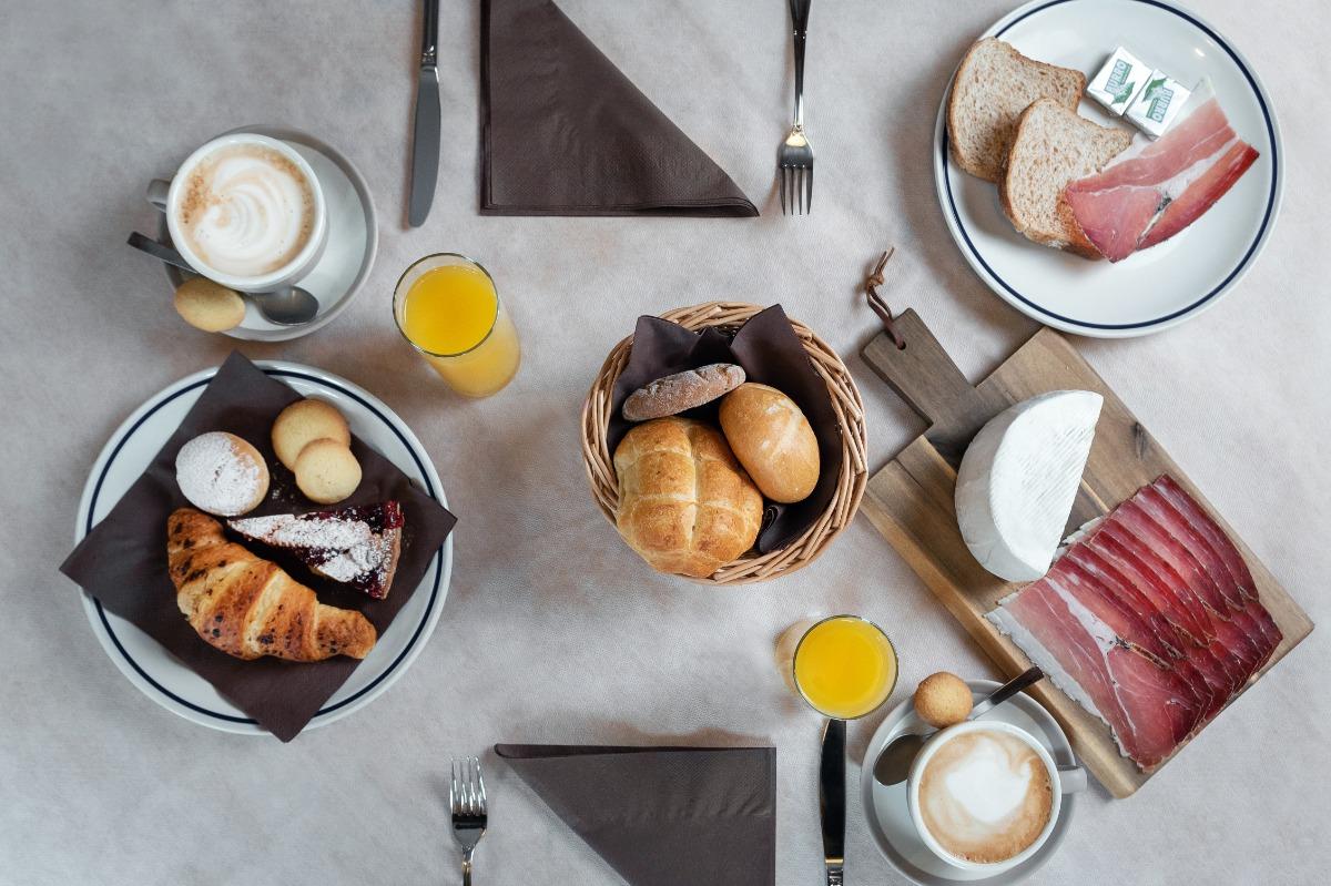 You will find the products to start the day in the best possible way: homemade cakes, homemade biscuits, coffee, milk, tea, fruit juices, yogurt, biscuits, rusks, cereals, toast, bread, croissants, nutella, honey, butter, cream cheese, cold cut and fruit.