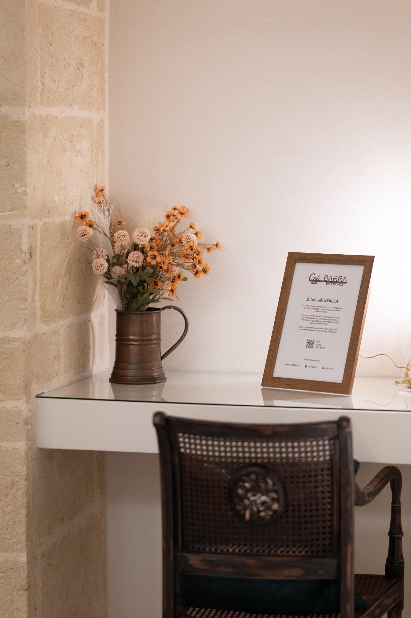 Corte Barra is created from the restoration of a small rural structure, now transformed into a warm and elegant bed & breakfast. The four rooms, each with its own unique character, provide meticulously designed environments equipped with modern comforts. The Barn features a skylight above the bed and a hot tub, while the Small Courtyard combines a jacuzzi with a wine cellar. The House includes a convenient kitchenette, and the Stable is designed to ensure full accessibility and spaciousness.