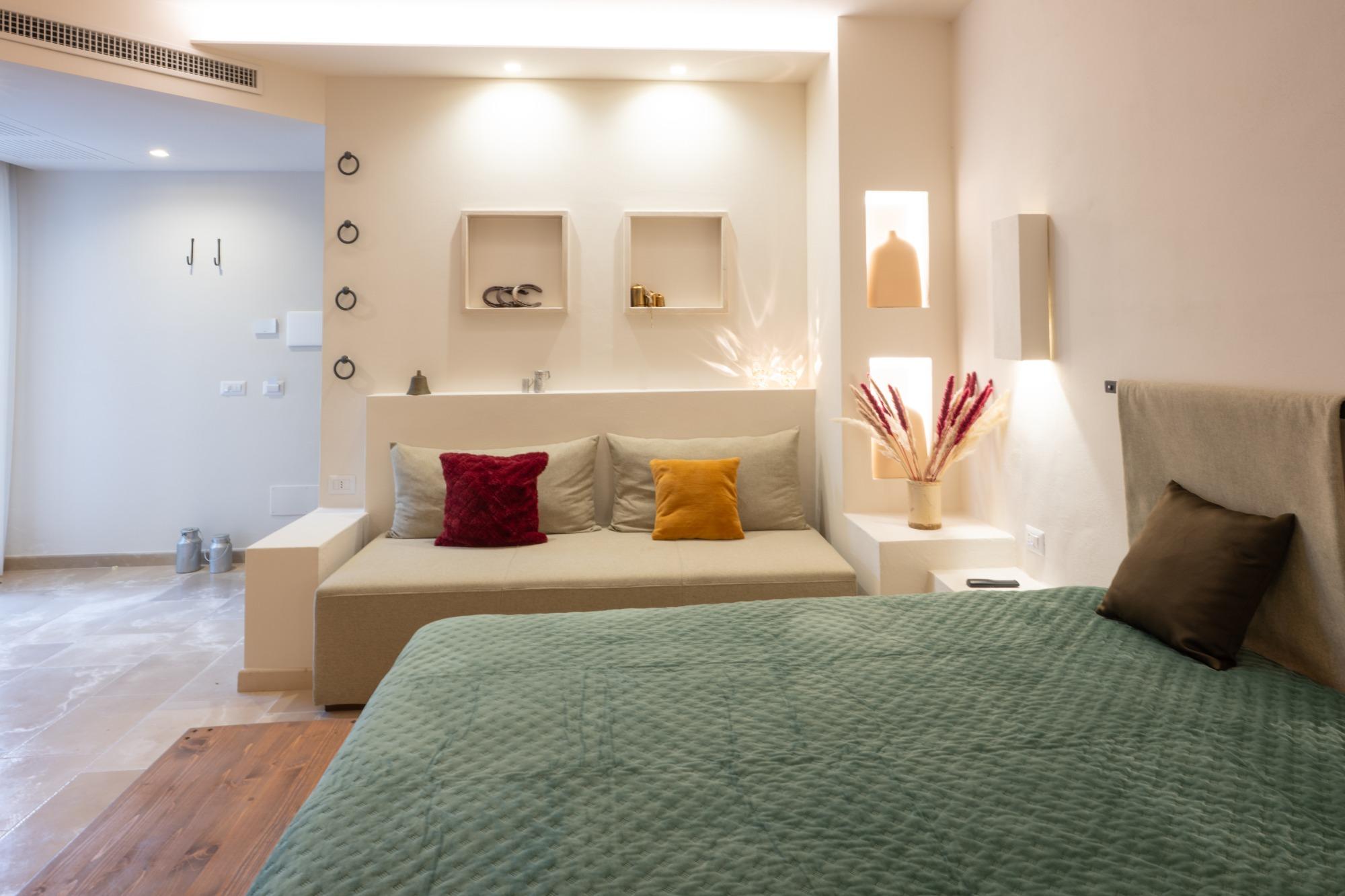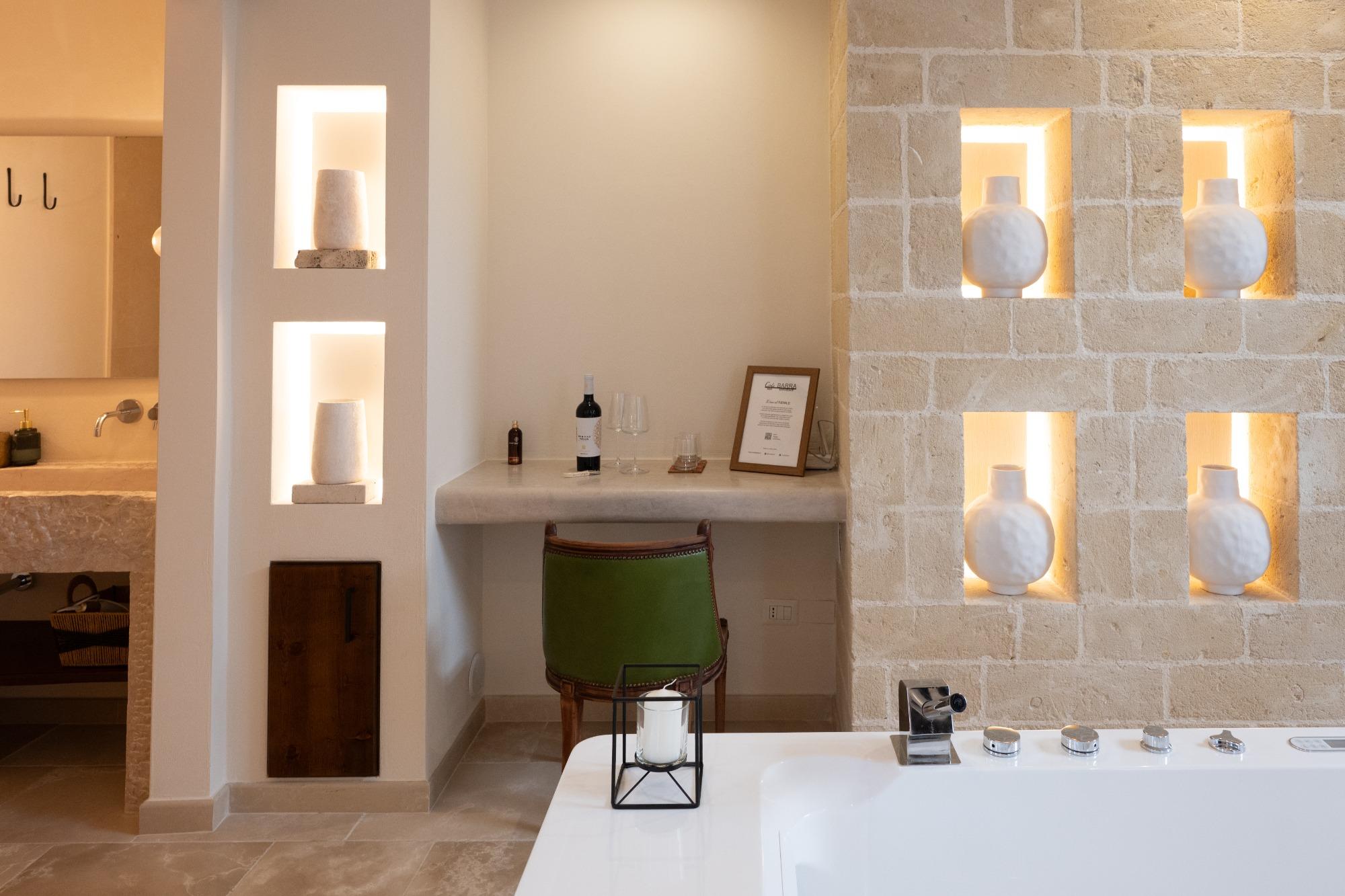 The internal courtyard, quiet and cozy, blends modern lines with elements of Apulian tradition, creating a genuinely relaxing atmosphere. Anna, the owner, welcomes guests with warmth and attentiveness, making every stay a family-like and authentic experience.