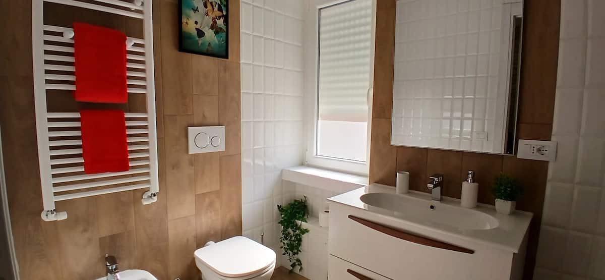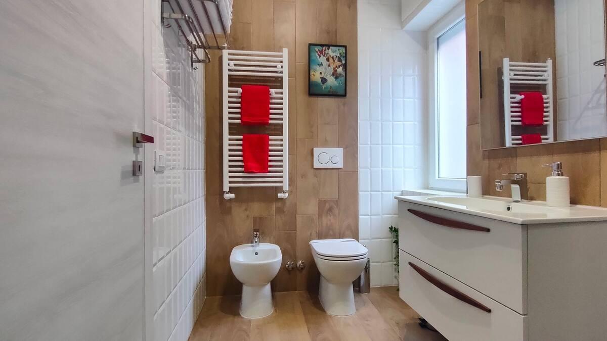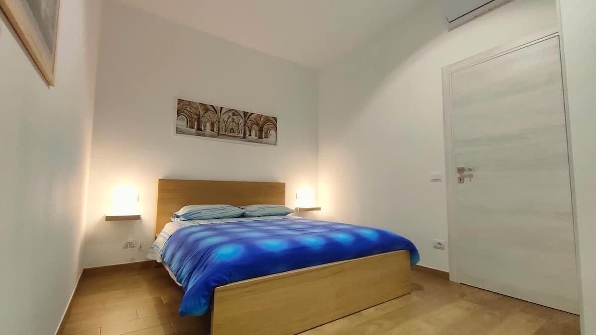 El alojamiento, ubicado en el primer piso con ascensor, ofrece una zona de estar luminosa y funcional, equipada con mesa de comedor, sofá, smart TV con acceso gratuito a Netflix y una cocina bien equipada con nevera, horno y microondas. Las dos habitaciones, ambas con aire acondicionado, están decoradas con buen gusto y cuentan respectivamente con una cama doble (160x200 cm) y una cama de una plaza y media (140x200 cm). El baño dispone de una cómoda ducha y lavadora, ideal para estancias prolongadas. Para completar el ambiente, hay un balcón amueblado con mesa y sillas, perfecto para relajarse al aire libre.