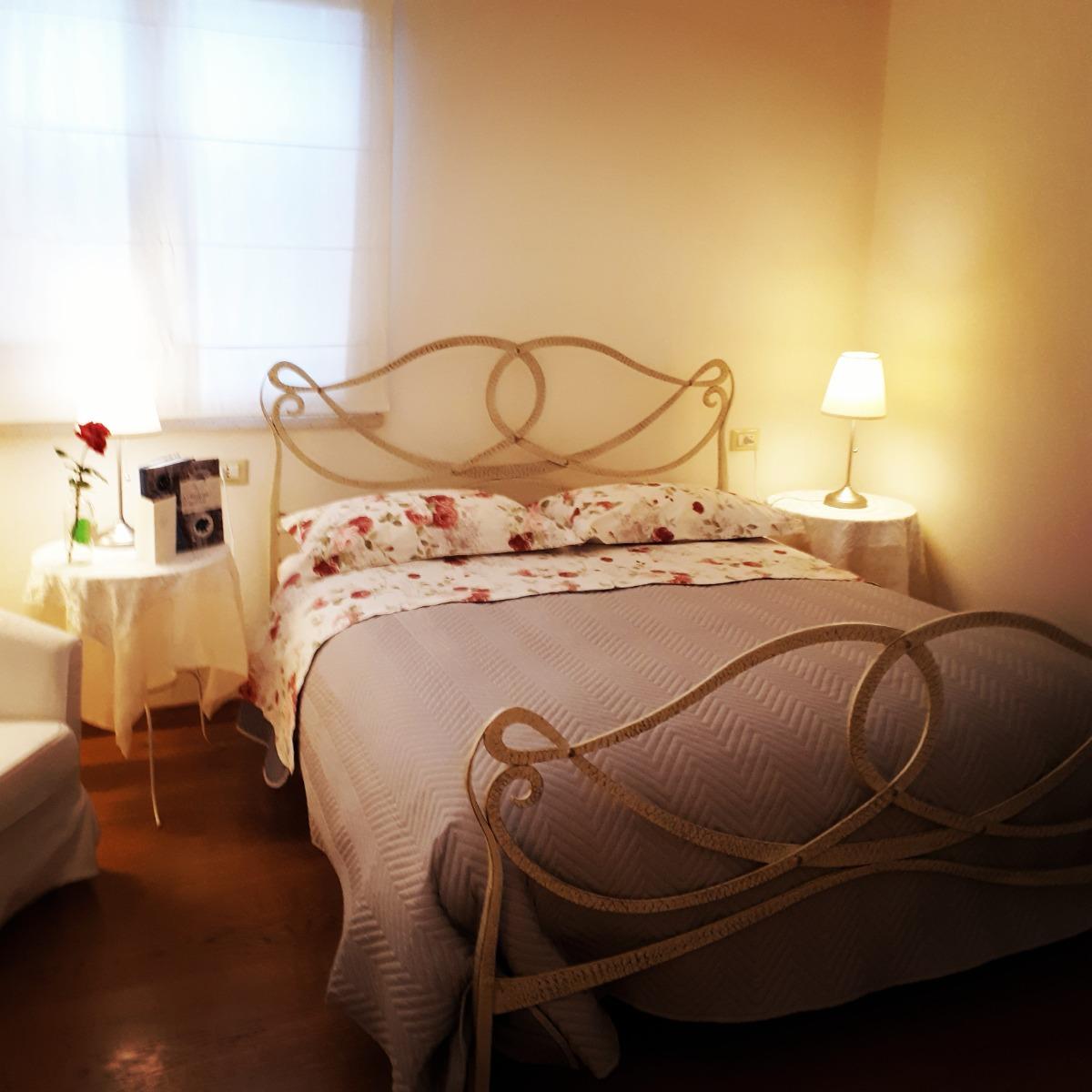 The second double room, Sorgesole, with a four-poster bed, can also be turned into a twin room. Its large bathroom has a hydromassage bathtub. Both rooms are bright and have two windows each with suggestive landscapes.