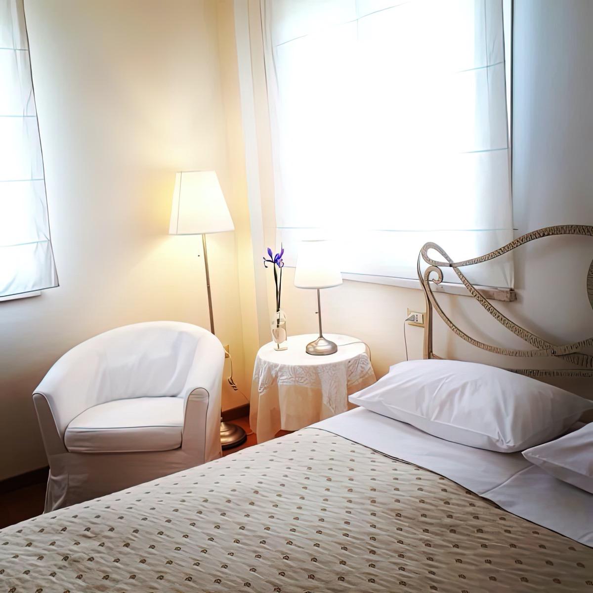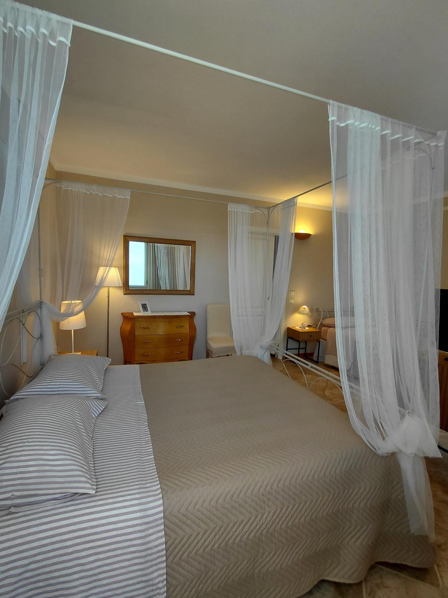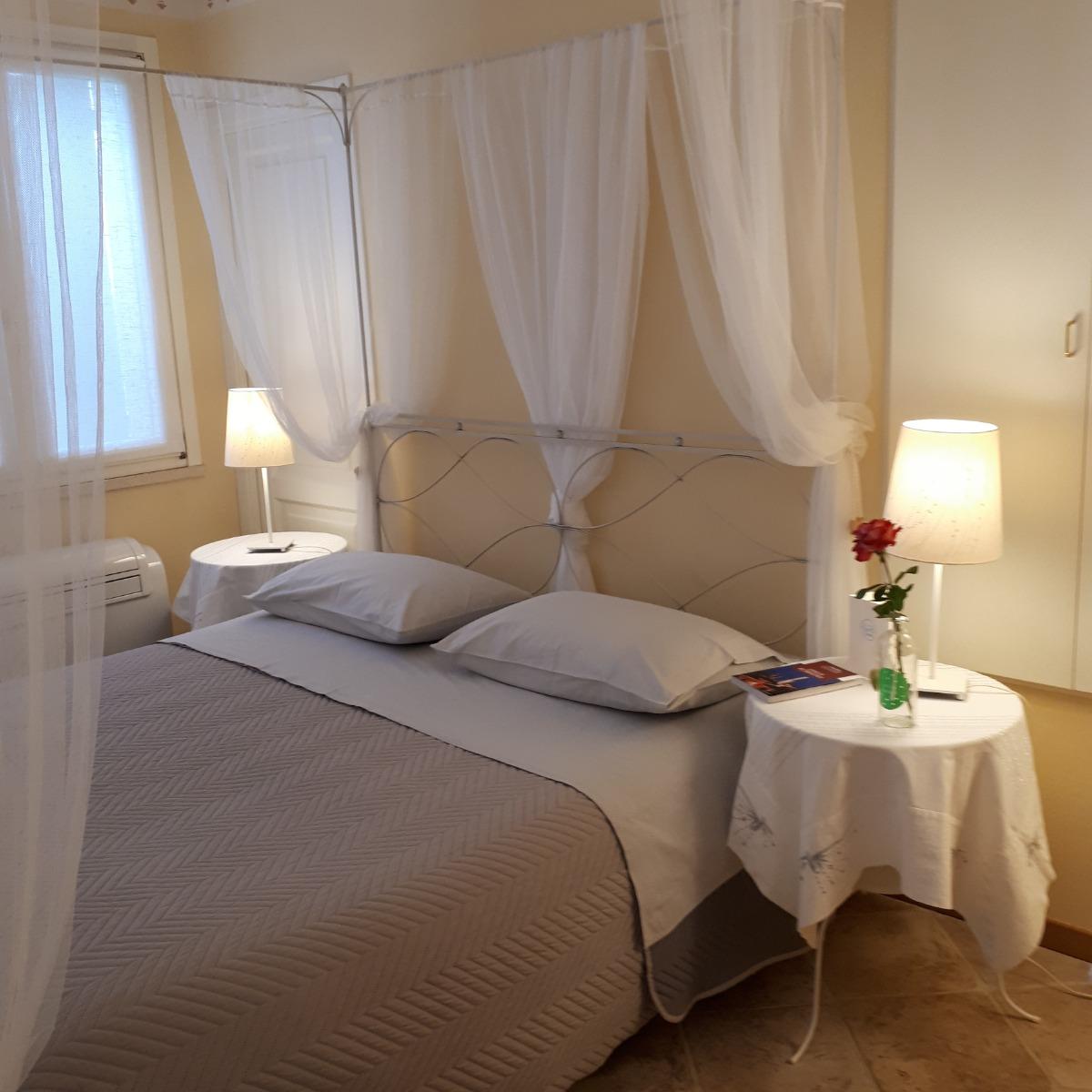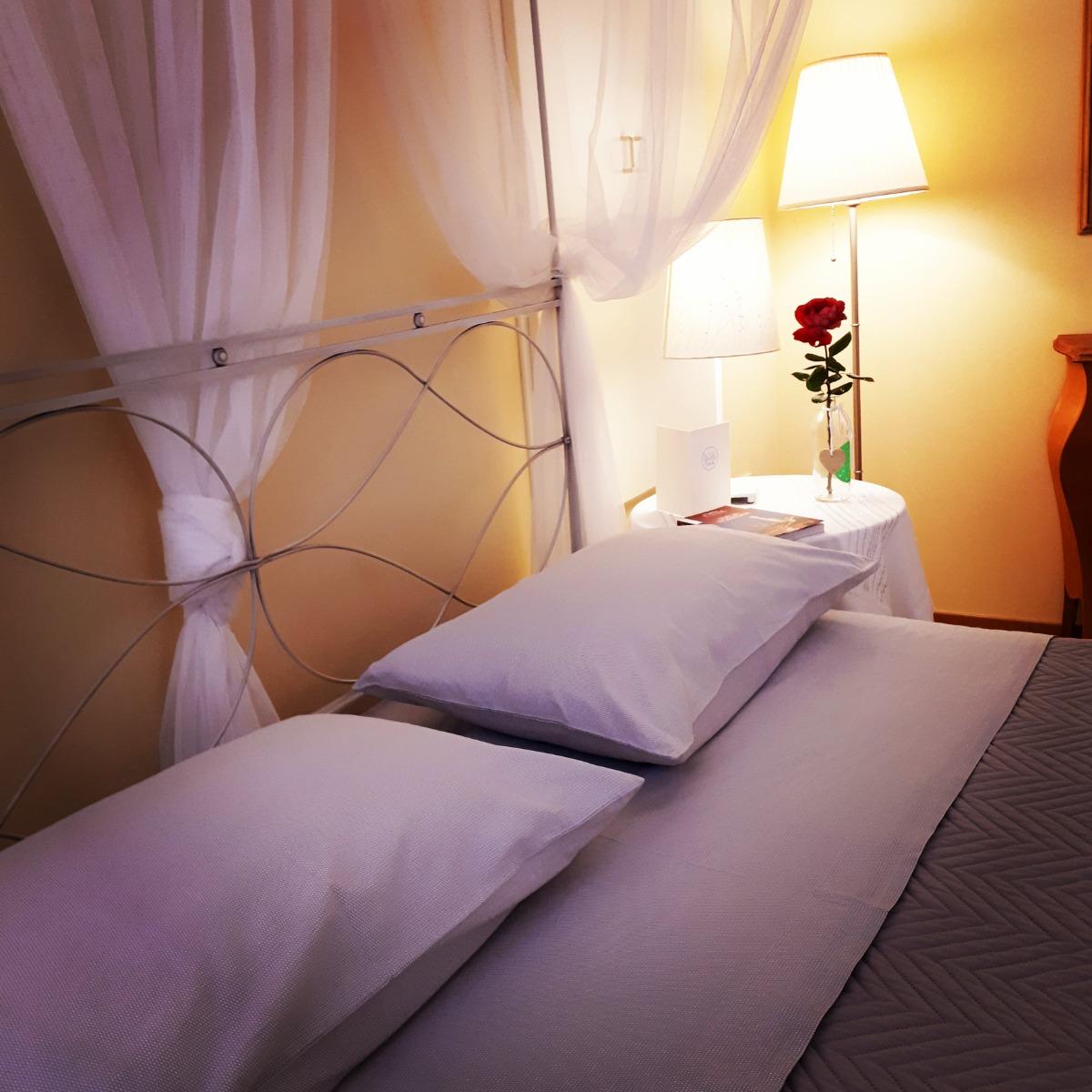 The third room, called "Whithe Suite", is located on the ground floor with an independent entrance. It has a four-poster bed, Cantori Raphaele series, an iron sofa bed that can become a comfortable single bed, a hydromassage shower box, and a small gym.