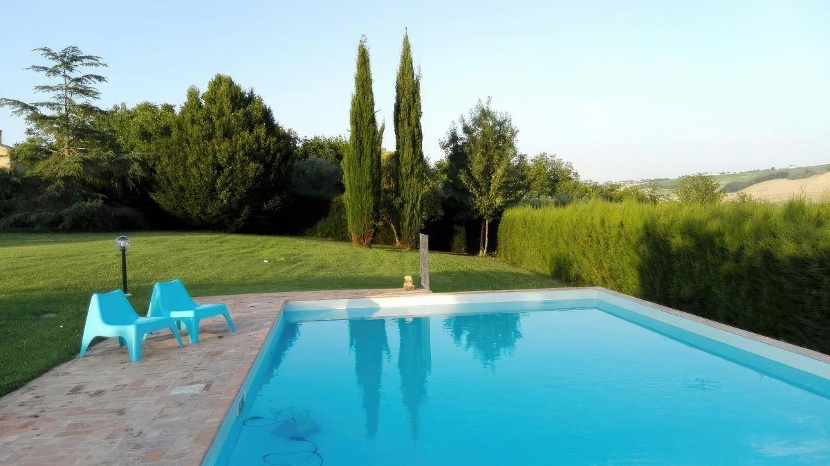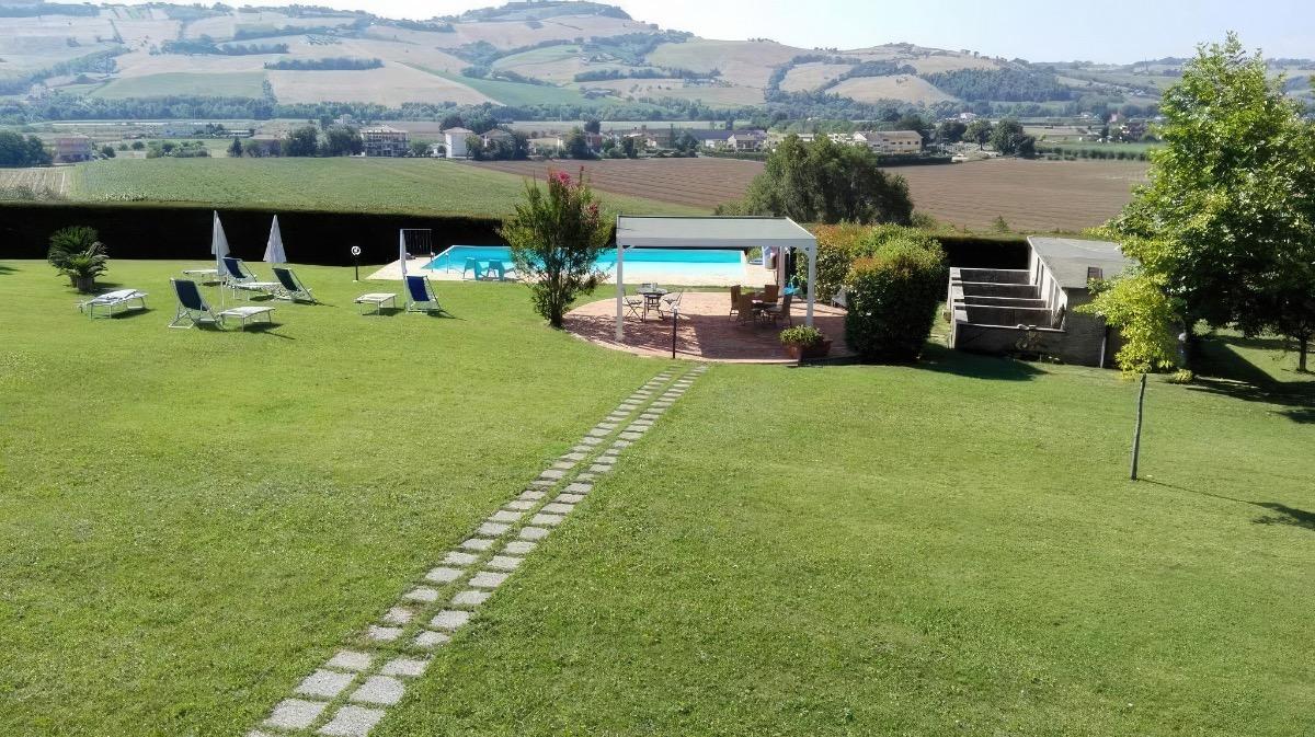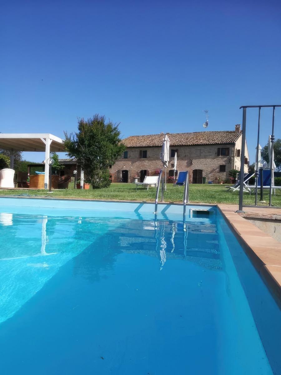 A beautiful farmhouse dating back to the late 1800s, surrounded by a vast garden with a swimming pool that offers a splendid view of the hills of Marche. If you desire a relaxing vacation, we open the doors of our home and offer you spacious rooms tastefully and simply furnished. The garden and pool, along with umbrellas and lounge chairs, are at your disposal to fully enjoy your stay. The breakfast, included in the price, will delight you with homemade sweets and local products, all served in the garden. Our aim is to make you feel at home.