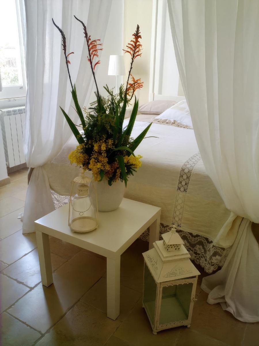 The Bed and breakfast La Lanterna del Salento has three double rooms, all with private bathroom, shower, and hairdryer. Upon request, an extra bed can be added to the Vespro room. All rooms are equipped with heating and air conditioning.