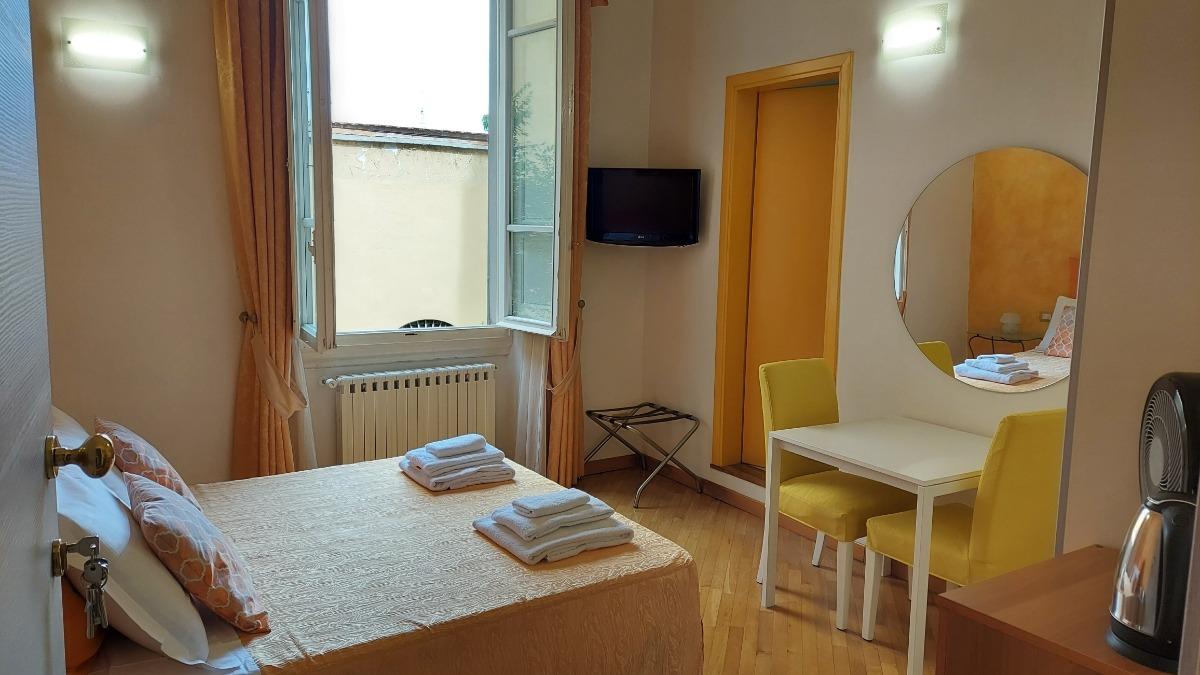 Within a short distance from the property, you will find examples of our Florentine heritage and numerous tourist attractions. In particular, just about 350 meters away is the Basilica of Santa Maria Novella. La Locandiera is the ideal choice for families traveling, who will feel right at home here, but also for those traveling for business or for a romantic and discreet dream vacation. The six available rooms are all cozy and tastefully furnished. Warm parquet flooring envelops each room and the large windows allow you to enjoy beautiful natural light. Each room is equipped with a table for breakfast or for enjoying meals in complete privacy and safety. In addition, you will find a mini fridge with a complimentary bottle of water, an electric kettle, and a tray with a wide selection of Twinings teas, Twinings infusions, and Nescafé coffee. Each room has a private marble bathroom (pink or gray) with a shower, equipped with all the amenities you may need.