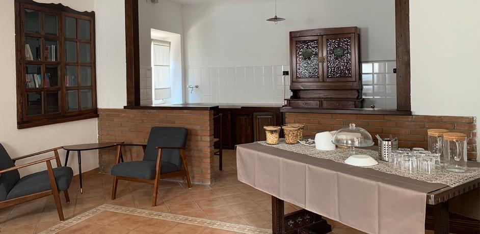 The spacious relaxation room on the ground floor, recently renovated while maintaining the characteristic vault, is available to guests for breakfast and for a moment of relaxation at the end of the day, perhaps taking advantage of the small library located in an ancient window recovered and adapted as a bookshelf.