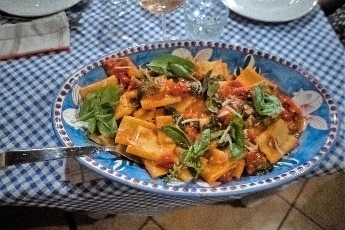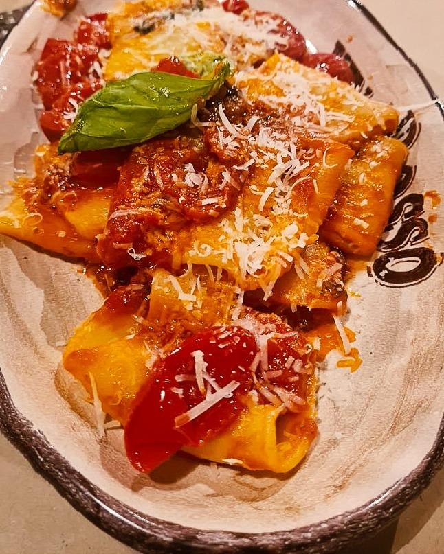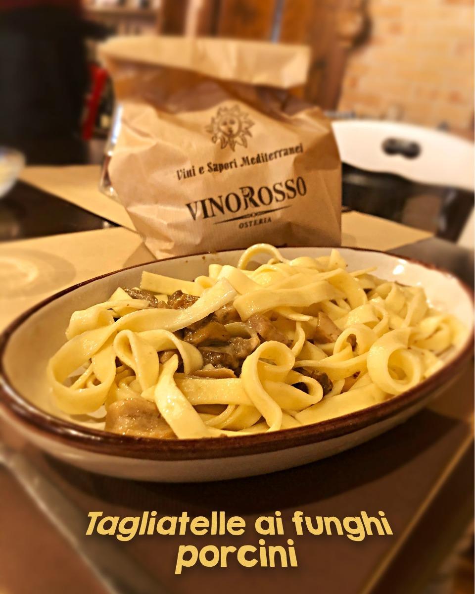 The Vino Rosso Osteria is a hidden gem of intimacy and warmth. Although it is not very large, it captivates with its welcoming and charming atmosphere. The dark wooden furnishings blend beautifully with the antique decor that adorns the walls: copper pots, wicker chairs, vintage paintings, and a large retro mirror that adds a touch of elegance.