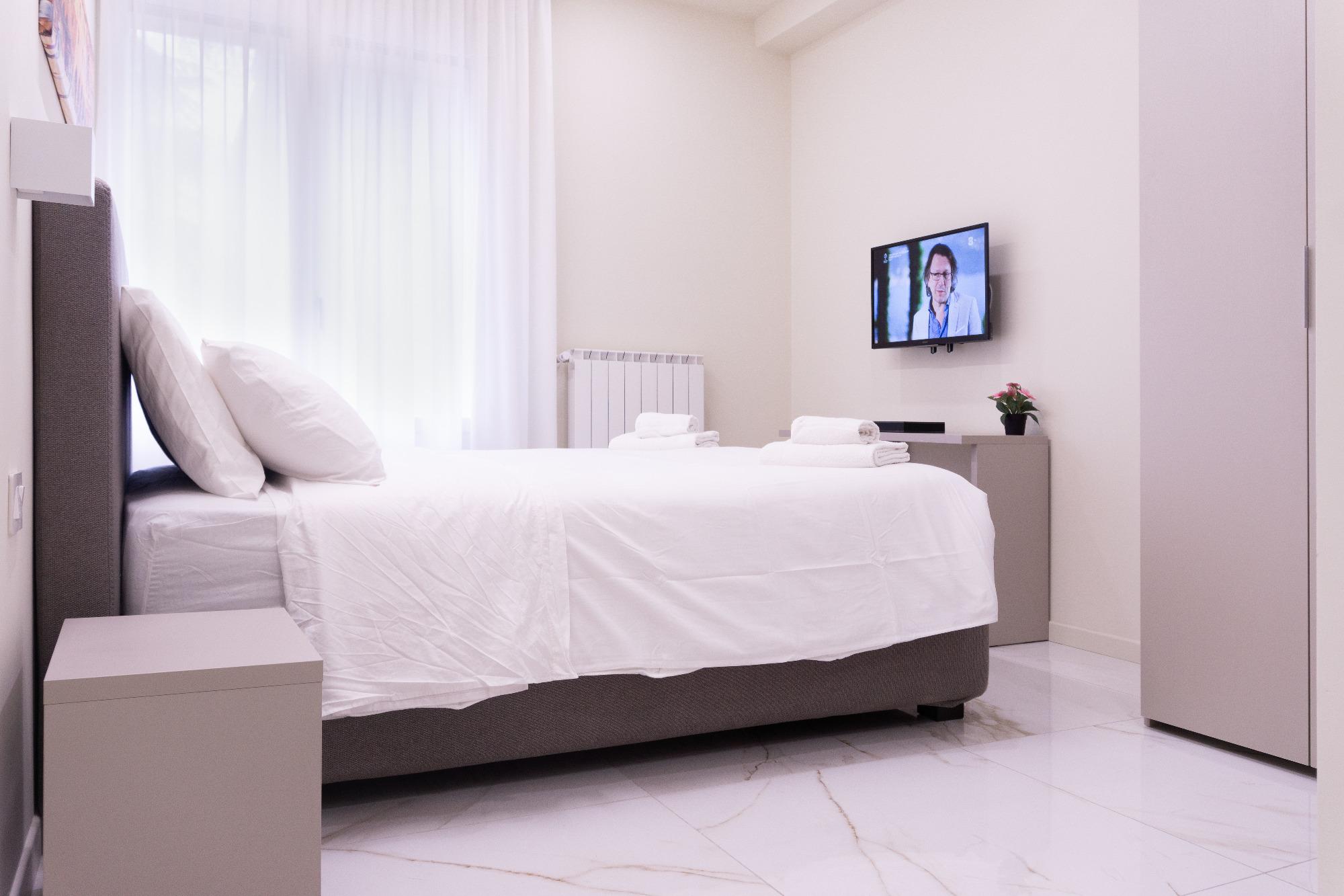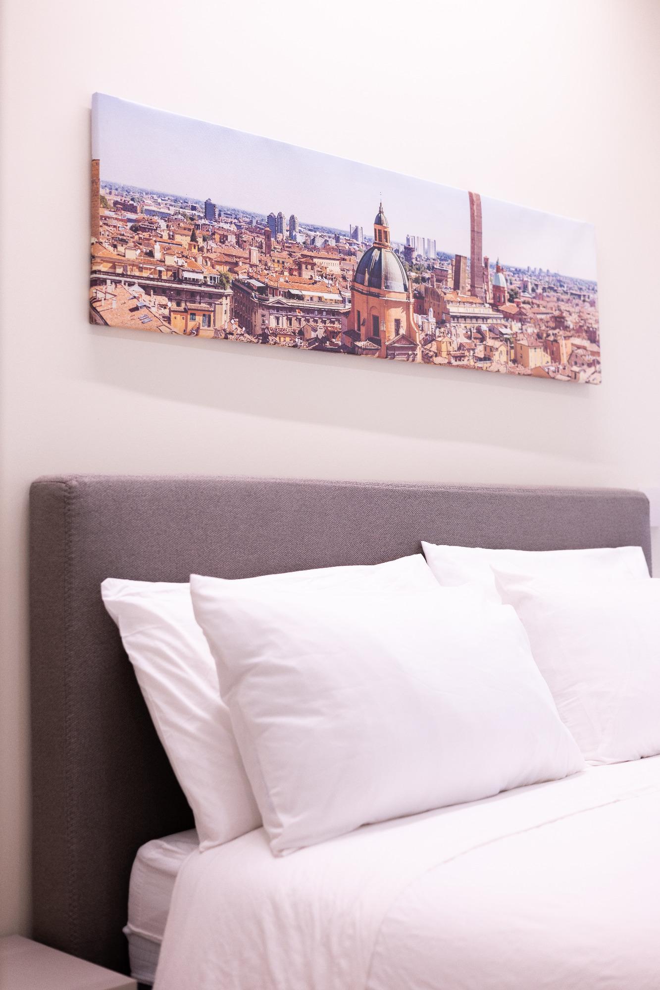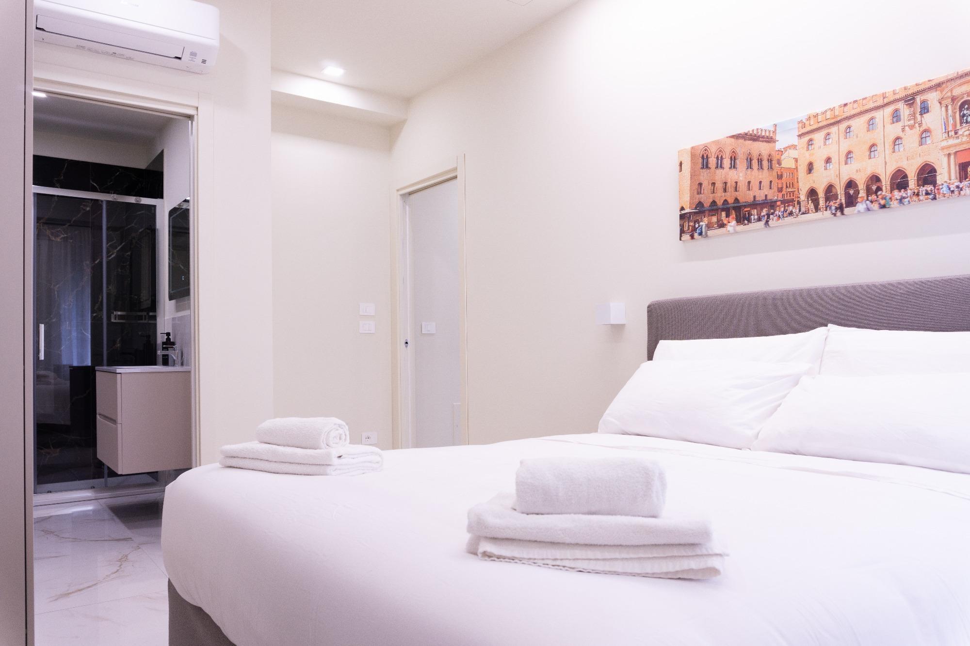 Ubicado en el centro de Bolonia, este nuevo y acogedor apartamento se encuentra a poca distancia de la estación central y de la Via dell'Indipendenza, perfecto para quienes desean explorar la ciudad a pie. Los espacios, recientemente renovados, cuentan con dos habitaciones dobles, una de ellas con baño privado, ambas equipadas con Smart TV, una sala de estar con cocina completamente equipada y un segundo baño.