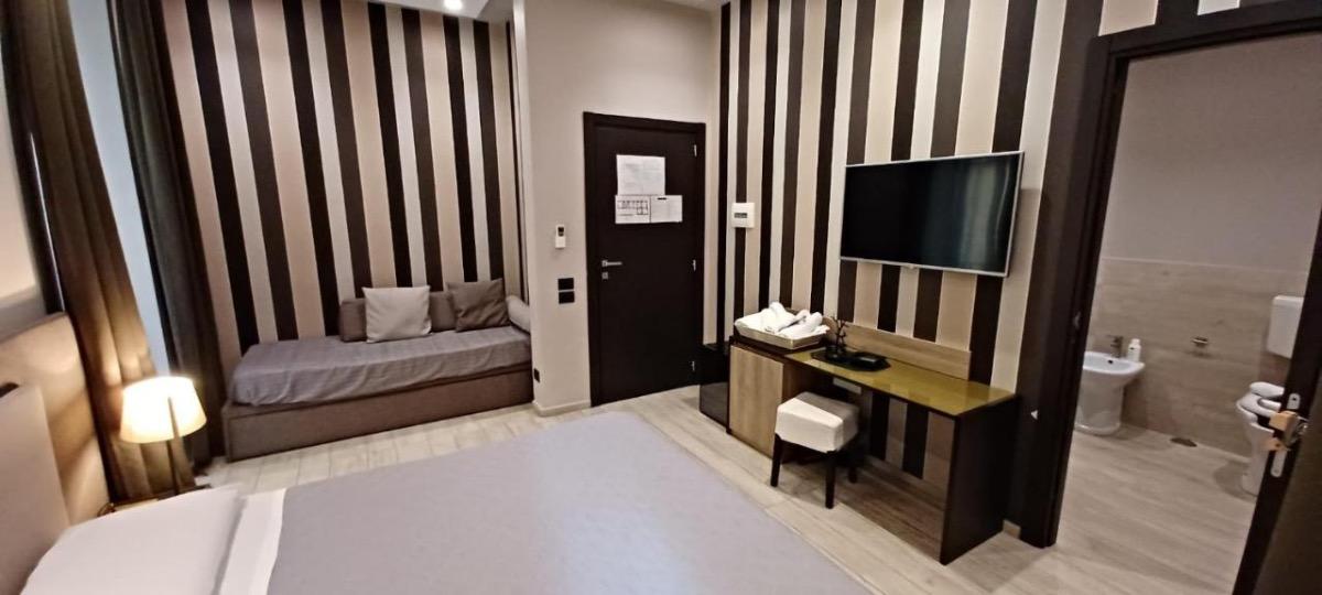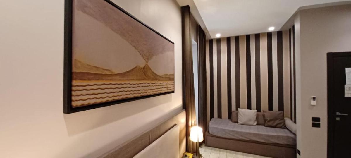 Our rooms, in addition to being impeccably clean, are designed to ensure maximum comfort. Each unit is air-conditioned to provide a pleasant temperature at all times of the year. You can enjoy a spacious seating area where you can relax after a day of exploring vibrant Naples. Flat-screen satellite TV, a safe, and a luxurious private bathroom with a walk-in shower, bathrobes, and slippers are just some of the amenities you will find in our rooms.