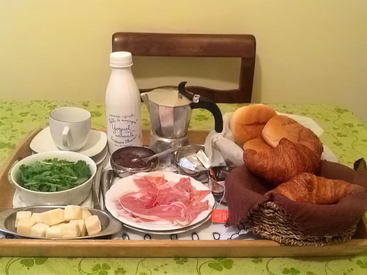This picture showcases a delightful breakfast requested by a guest from the Netherlands, eager to taste the typical products of Parma: cheese and cured ham. The plum jam is carefully made using plums from our garden, while the fresh arugula in the bowl is grown directly in our vegetable garden.