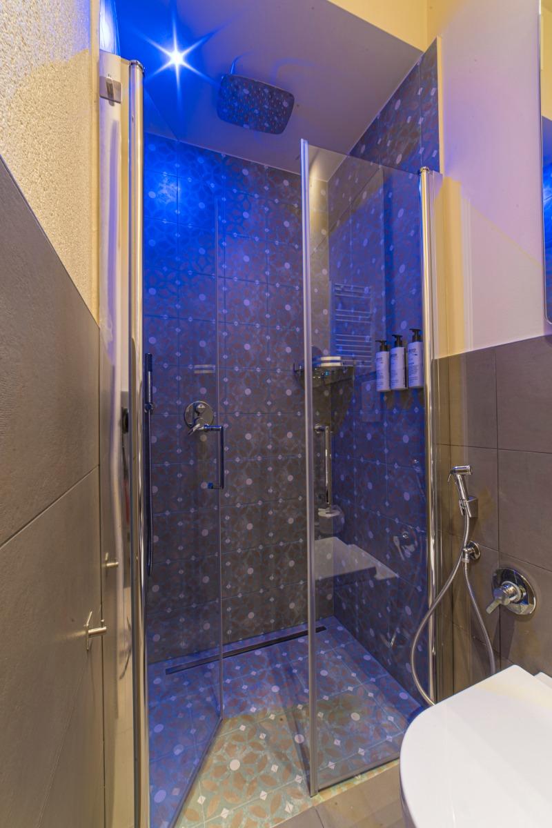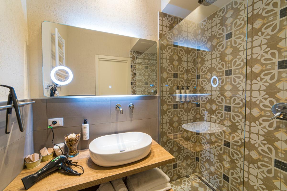 The private en-suite bathroom is equipped with an emotional shower, a towel heater, a professional hairdryer, a makeup mirror, hand soap, bath products, shampoo and conditioner, as well as an eco-friendly toiletry set.