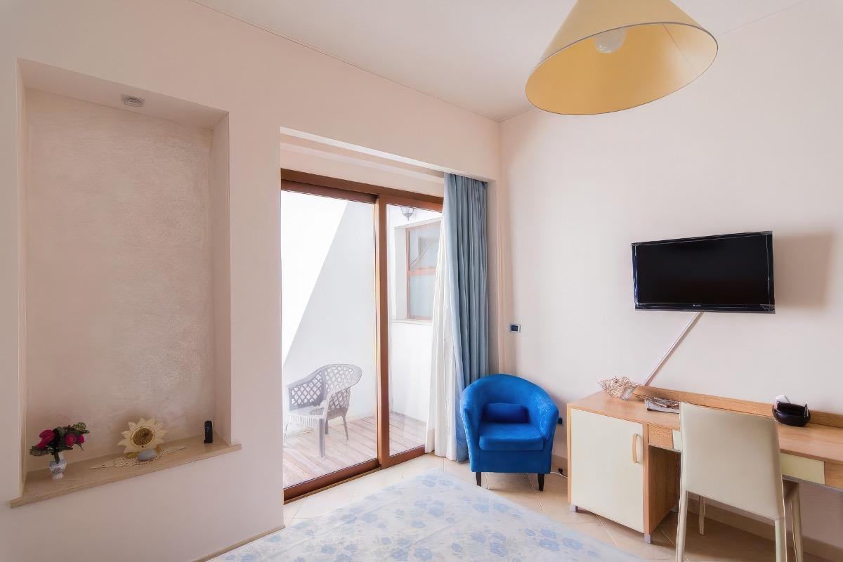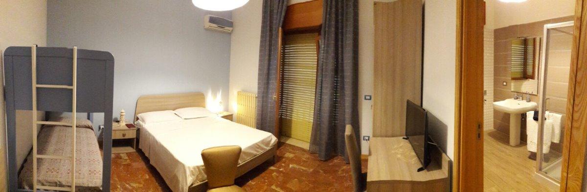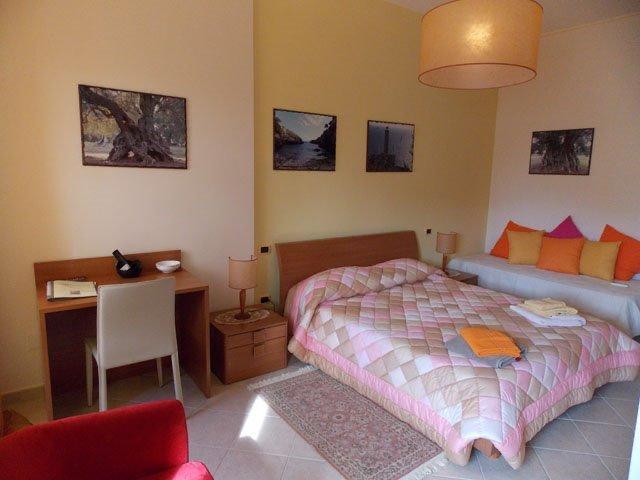 Near the municipal villa, on Via IV Novembre, there are three rooms: Aurora (a quadruple room with a large bathroom), Adriatico (with a garden view), and Ionio (our deluxe room with an independent balcony and chromotherapy shower cabin). The rooms are located on the first floor, while the owners live on the ground floor.