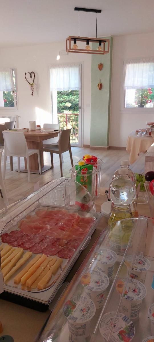 To start your day off right, we recommend enjoying a hearty buffet breakfast in our spacious and bright dining room, which offers a splendid view of the surrounding greenery. You will find a variety of sweet and savory options. You can savor locally produced pastries, filled croissants, dried fruits, and fruit compotes, all made by artisanal workshops in the area. Additionally, we offer fruit juices, fresh fruit, coffee, milk, tea, locally sourced cheeses, local cured ham, and cold cuts from small local producers. Our owners are attentive to the needs of those with food intolerances and will be happy to provide what you need upon request. This way, we are able to cater to the preferences of every palate.