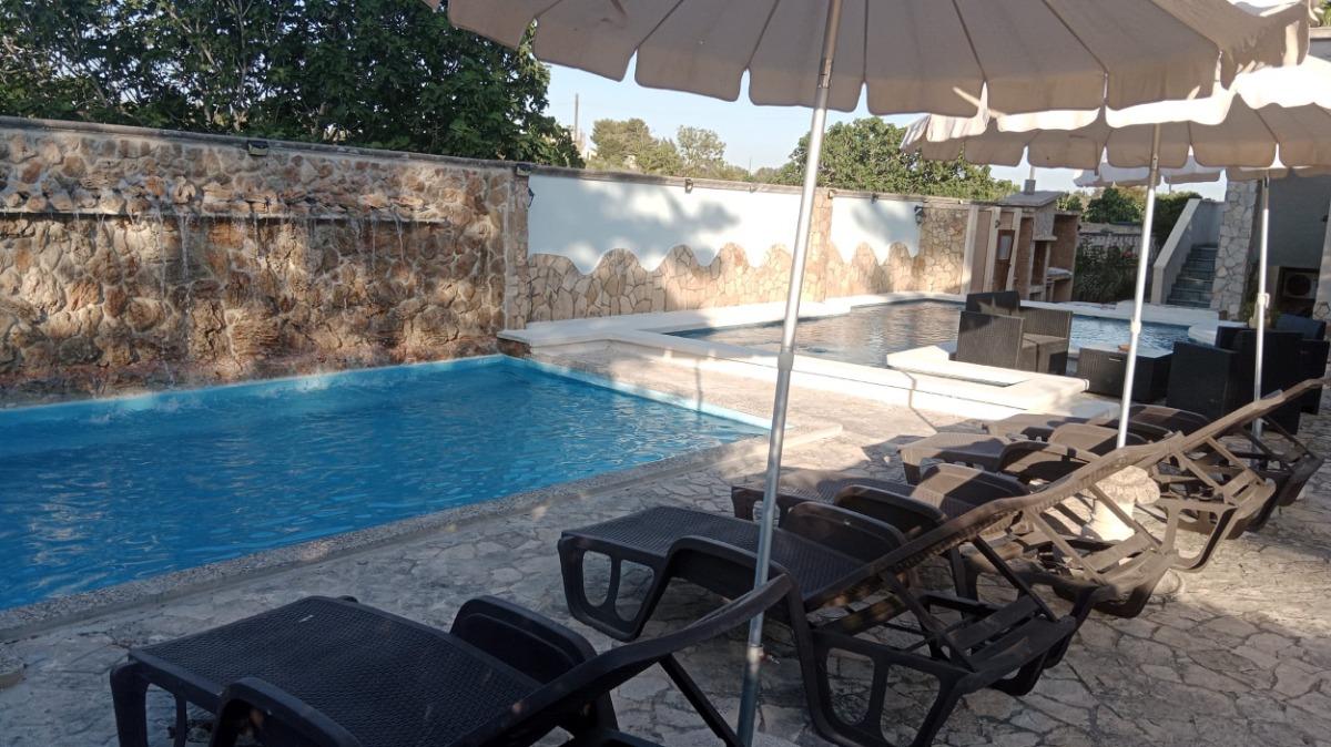 For those who would also like to use the pool and the small whirlpool with a waterfall, you can also use the umbrellas and lounge chairs (only from 10: 00 AM to 8: 00 PM). Use of these services is subject to a fee. Pool service costs an additional €10 per person per day.